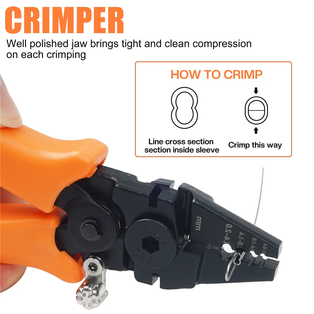 Material: Alicates de pesca de acero inoxidable, manga de prensado de latón