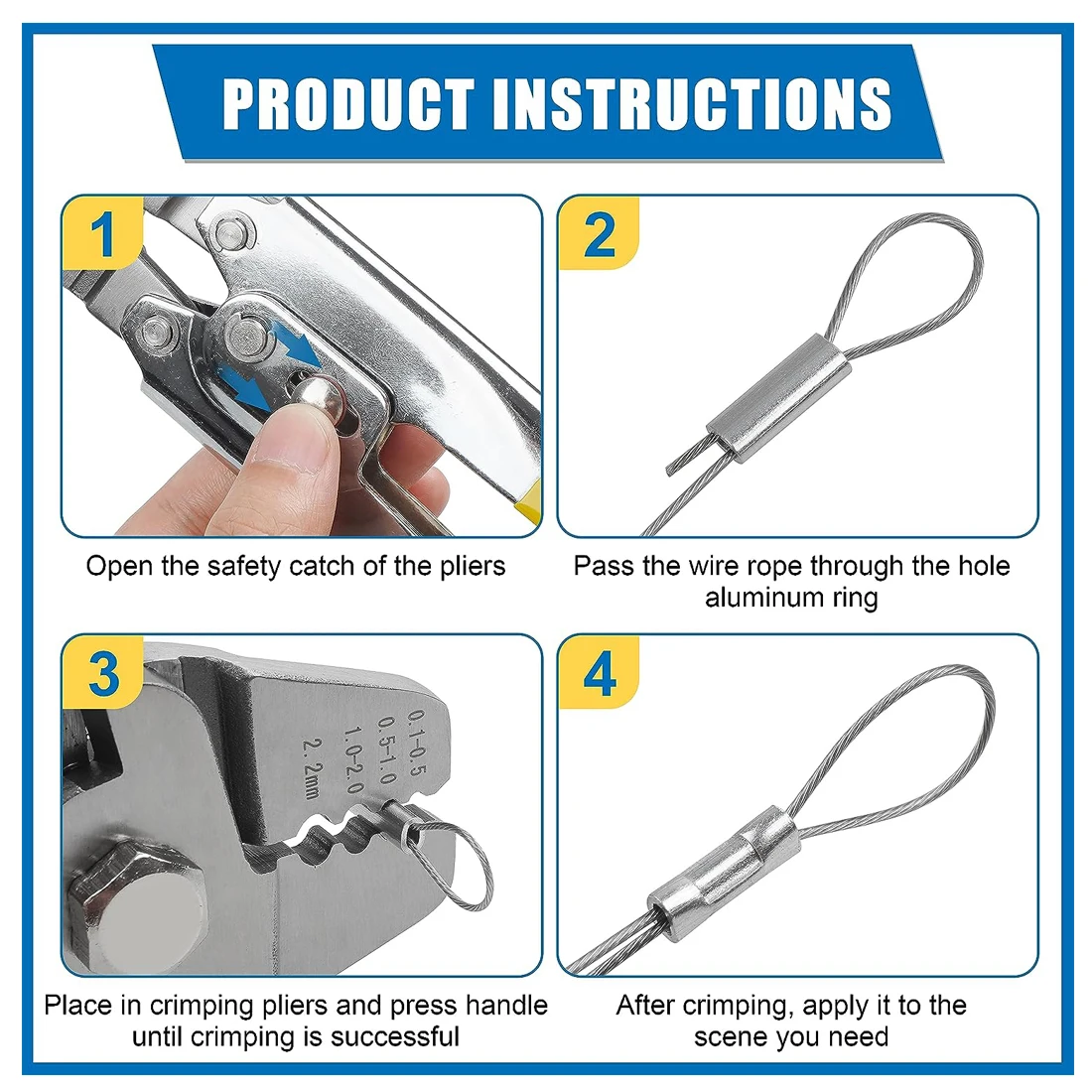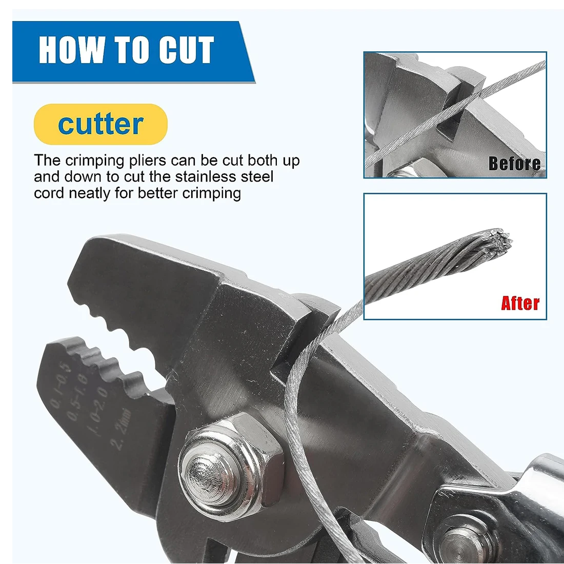 Alicates de engarce de pesca de acero inoxidable, herramienta de engarce de cuerda de alambre con cuentas de mangas de engarce de barril de cobre de aluminio de 5 tamaños de 410, de 3, 2,