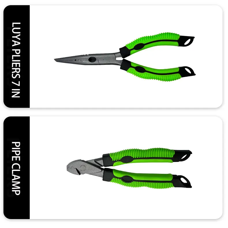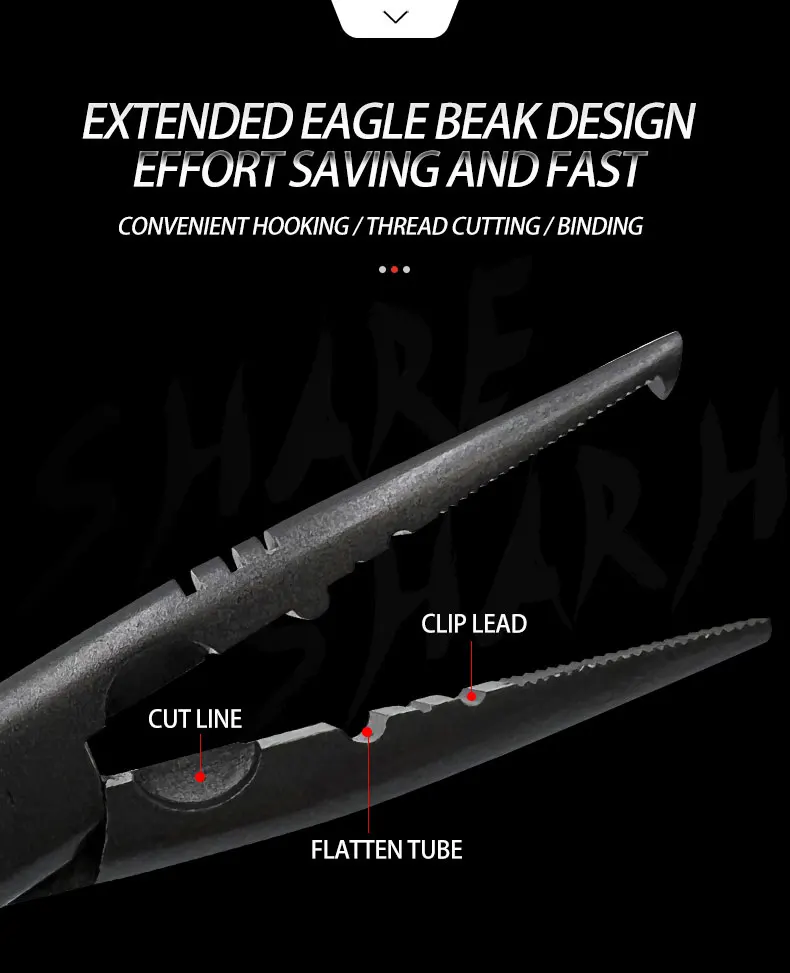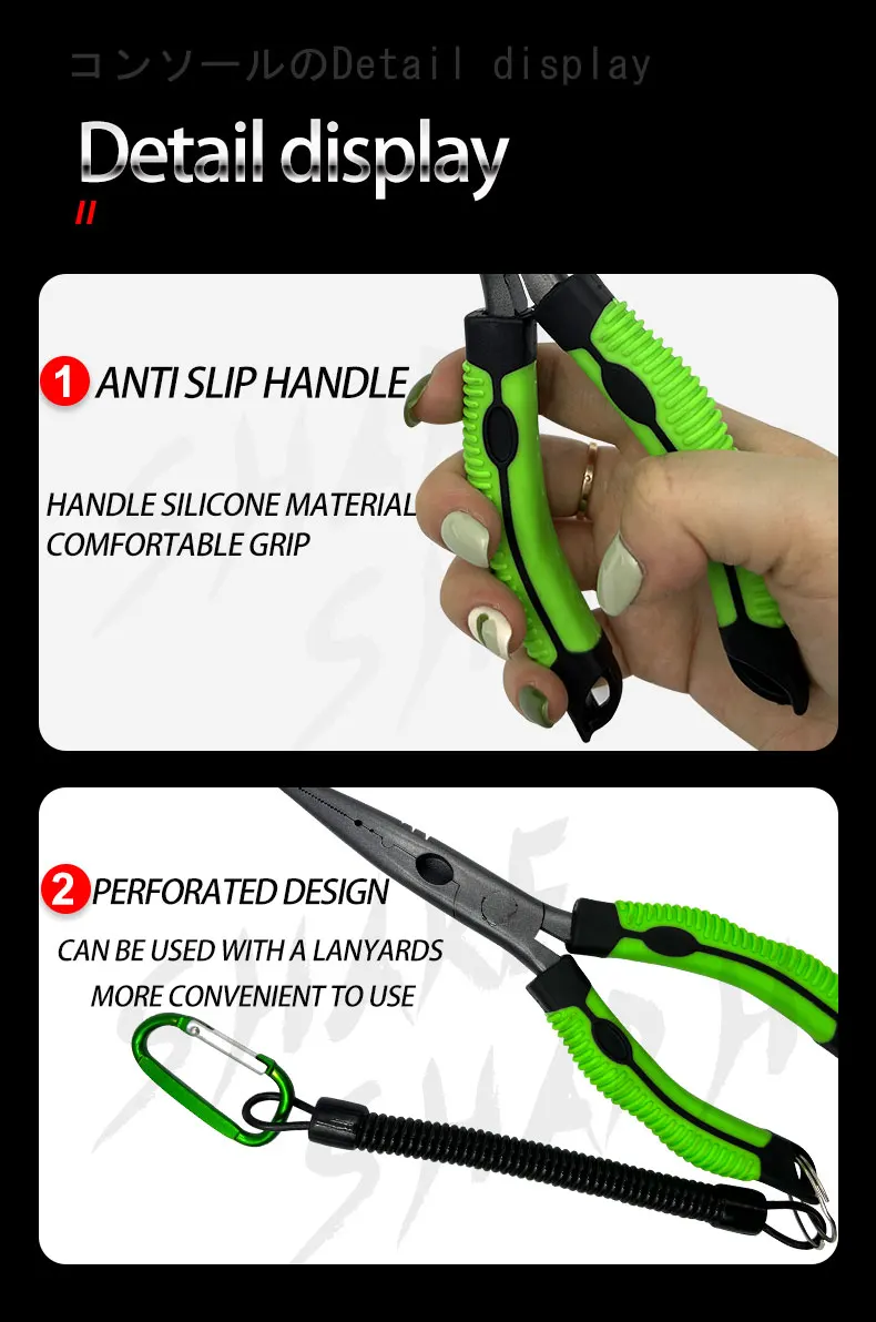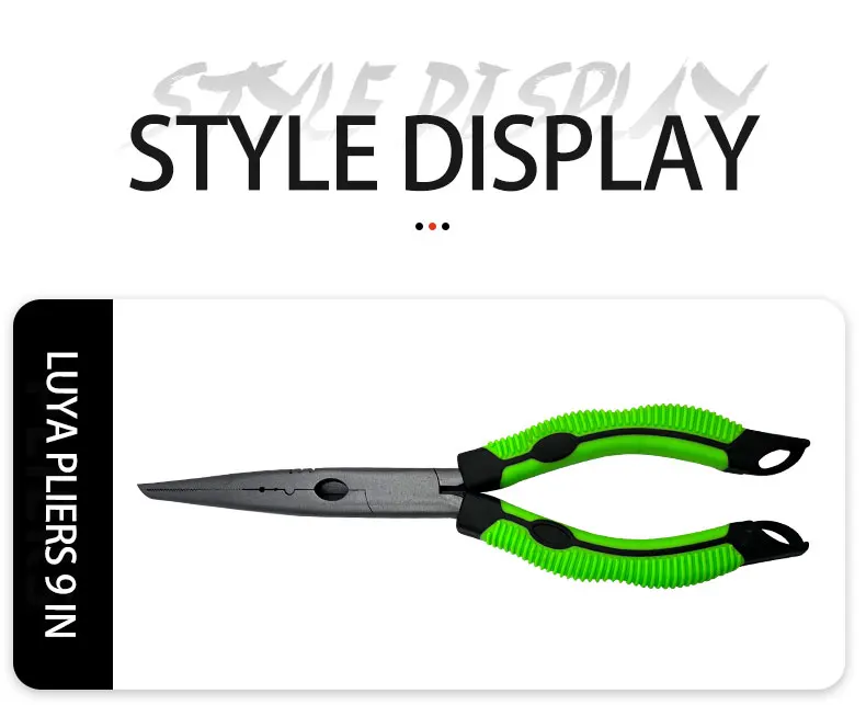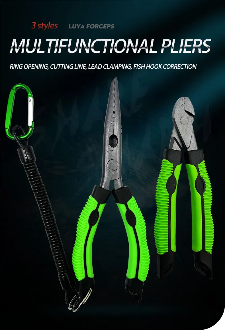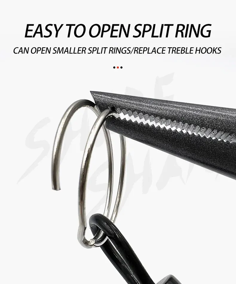 Alicates de punta larga con aguja de acero rico en carbono, removedor de anzuelos, alicates de anillo dividido abierto, cortador de línea, alicates de pesca y prensado
