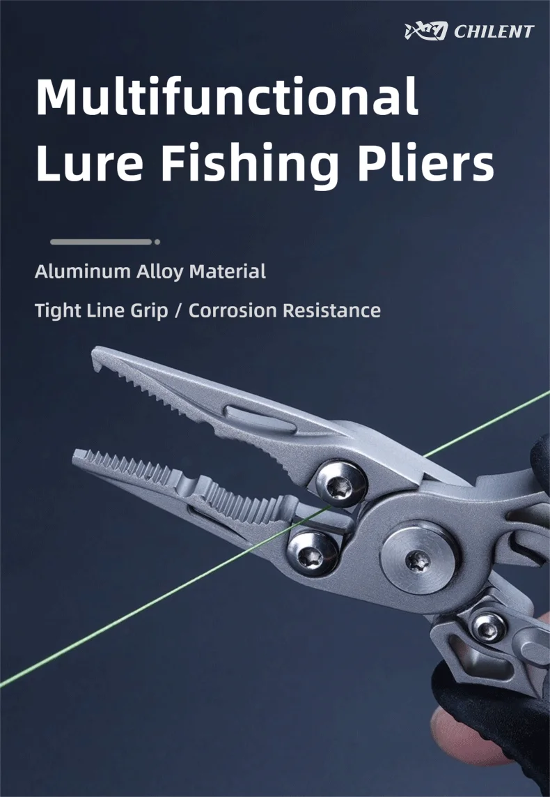 El alicate multifuncional para señuelos de boca curva CHILENT es una herramienta versátil para los pescadores, que combina alicates y tijeras para una gestión eficiente de los aparejos mientras viajan.