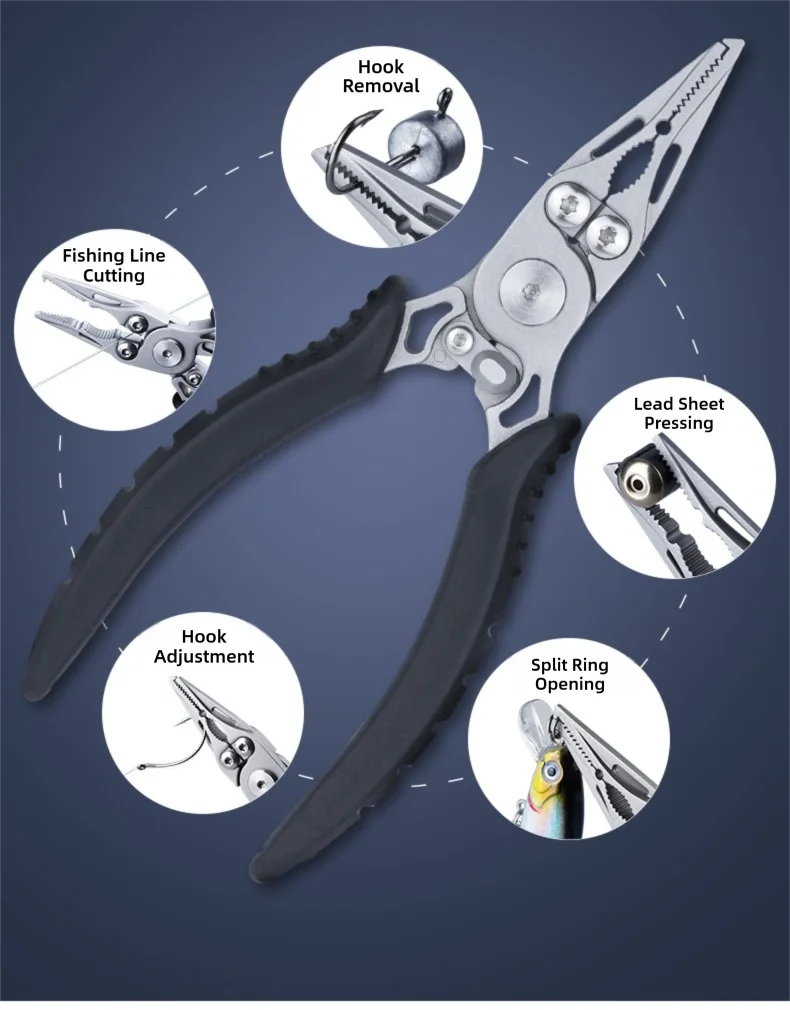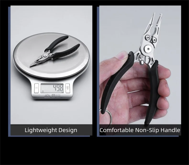 Más allá del corte y agarre, esta herramienta versátil puede servir como revestimiento de alambre, cuchillo multiusos para ajustar señuelos, etc., ofreciendo un uso extensivo.