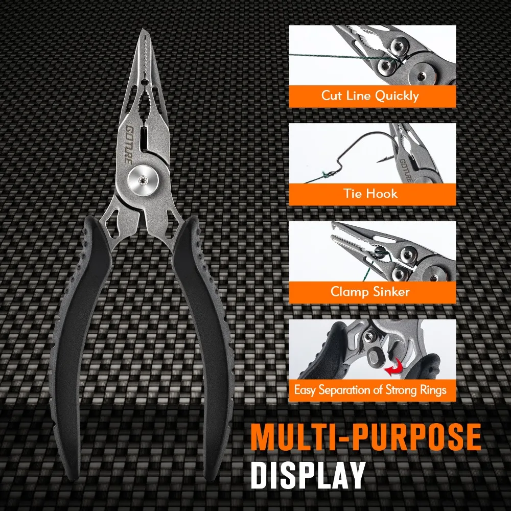 Alicates de señuelo GOTURE, cortador de anillo dividido de acero de tungsteno, tijeras de alambre, removedor de anzuelos, herramientas de pesca, aparejos, alicates de pesca de 5 pulgadas