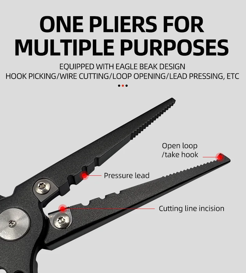 Alicates multifuncionales para señuelos para invitados, alicates de pesca de boca larga de acero inoxidable, cortador de anzuelos de anillo abierto, herramientas de aparejos de pesca