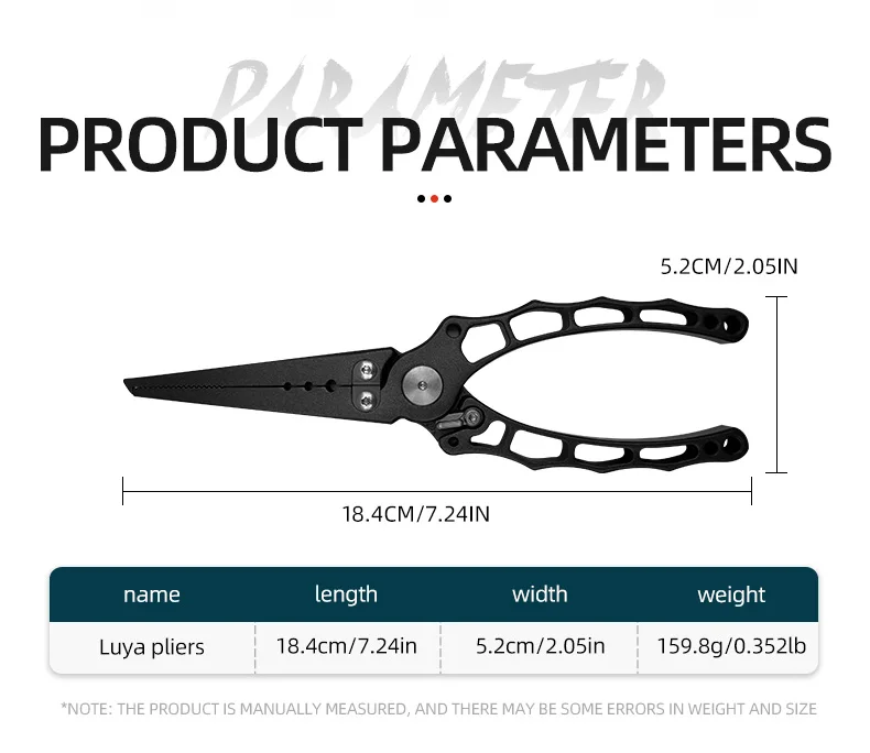 【Excelente material y función】【Cortador de carburo de tungsteno】【Diseño ergonómico innovador】Mango liviano y cómodo con ranuras ergonómicas para los dedos para un control superior, se engancha positivamente con las manos para una sensación sólida.El mango con resorte de alta calidad lo mantiene abierto libremente y ayuda máximamente a reducir la fatiga de la mano.El cierre de seguridad destacado facilita el almacenamiento o manejo de los alicates, es un equipo de pesca útil para los pescadores.Nombre del producto Alicates de pesca de aleación de aluminio Peso 159,8 g Longitud 18,4 cm Características Herramienta de pesca multifunción Logotipo Logotipo personalizado Entrega Entrega rápida
