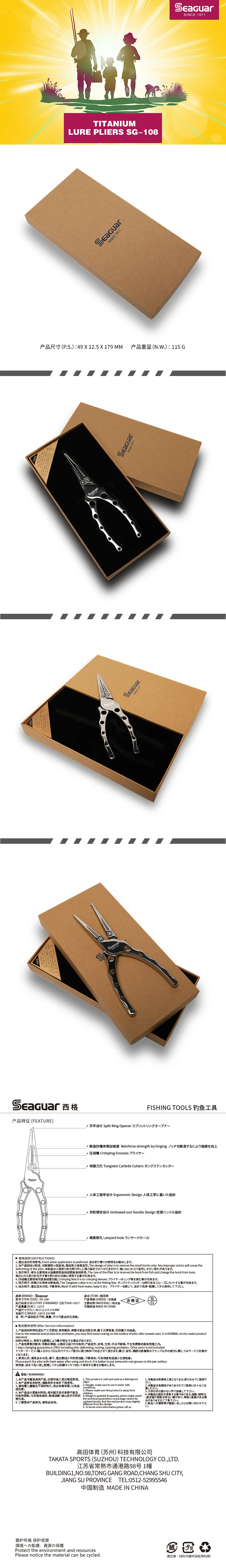 Alicates de señuelo de pesca de titanio Seaguar, SG-108 115g, tijeras de hilo de pescar de PE multifuncionales antioxidantes, novedad de 2024