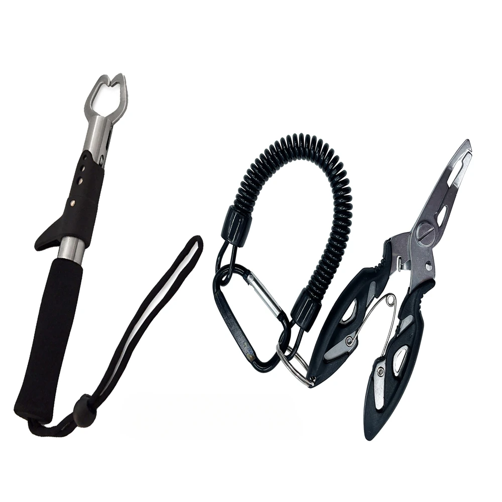 Alicates para señuelos, alicates multifuncionales de acero inoxidable, abrazadera para peces, controlador de peces, arrastre máximo de 15kg, accesorios de pesca antideslizantes