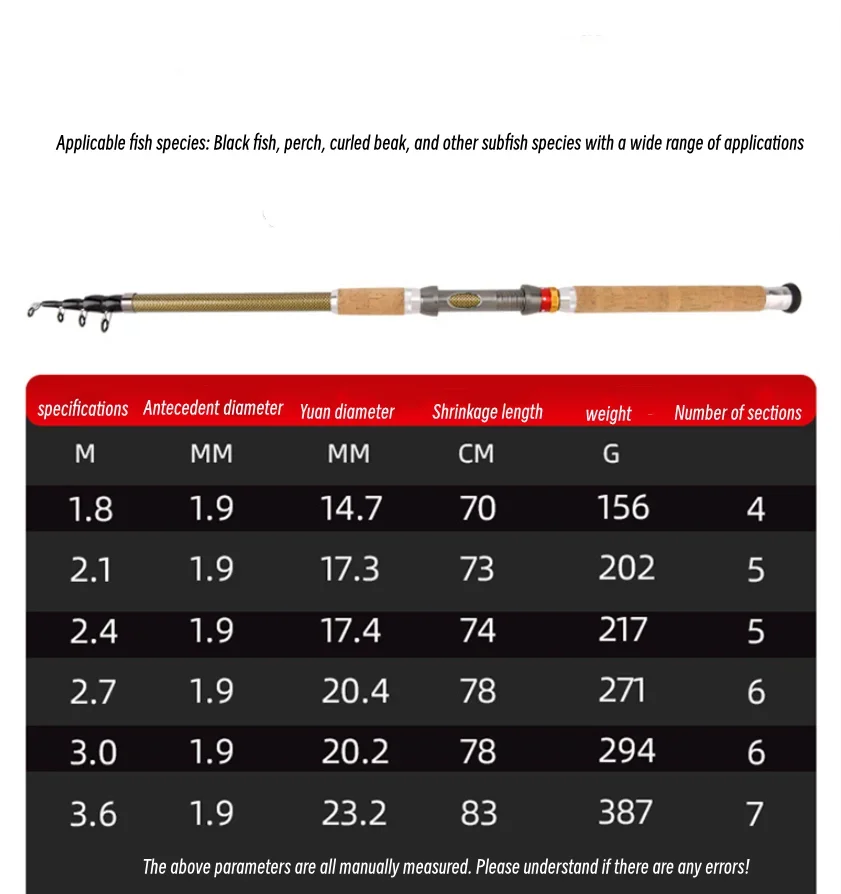 Alimentador de caña de pescar de carpa, fibra de carbono FRP duro, portátil, duradero, ultraligero, telescópico, poste de viaje, 1,8/2,1/3,0/3,6 M