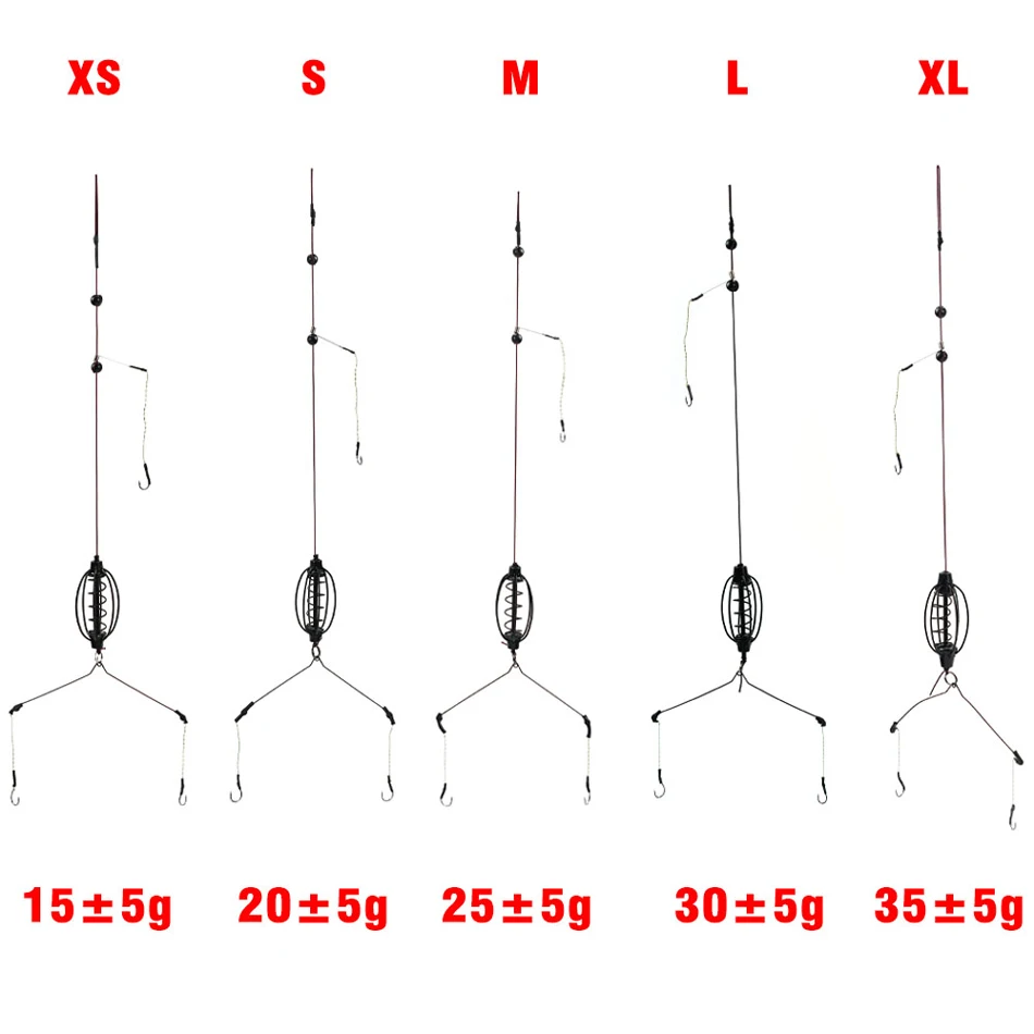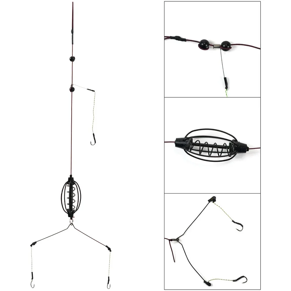 Alimentador de pesca de carpa, cebos, equipo de jaula, alimentador de peces de resorte con soporte, métodos en línea, aparejos de anzuelo, juego de pesas de plomo