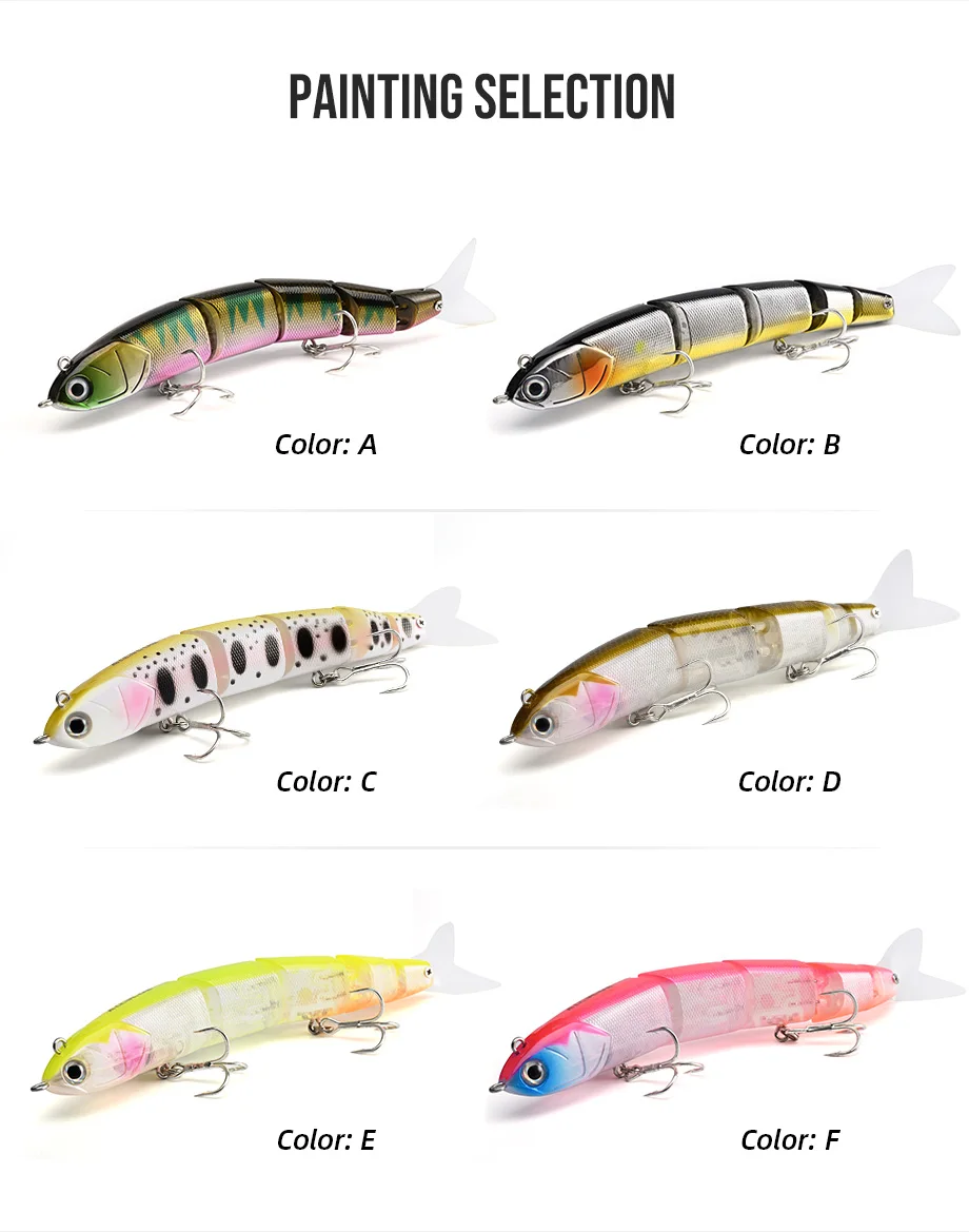 La cabeza está equipada con dos ojos, puede usar el ojo en la nariz para tirar de los señuelos de agua superior y el ojo en la cabeza para tirar bajo el agua unos 50 cm, lo que le permite manejar una variedad de situaciones.