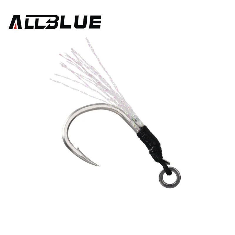 ALLBLUE-anzuelo de metal de cola con un pluma para agua salada, Cebo de pesca de 10-60 g, 6 unidades/lote