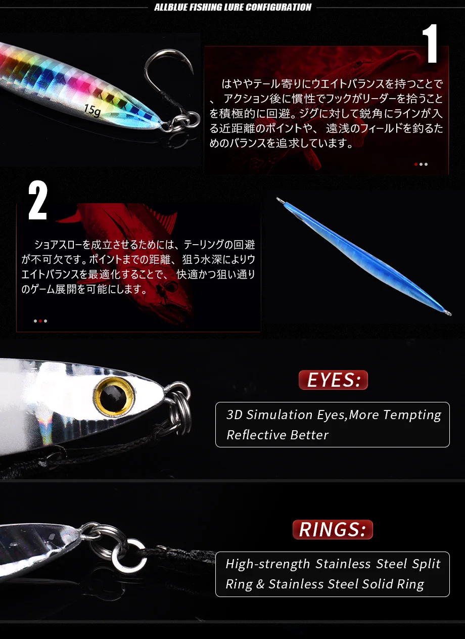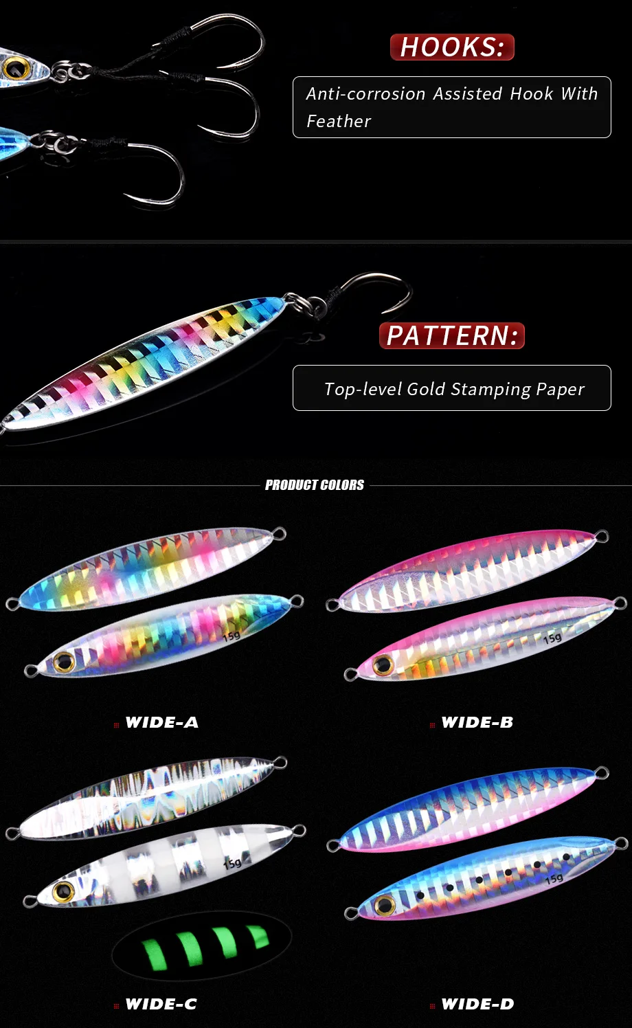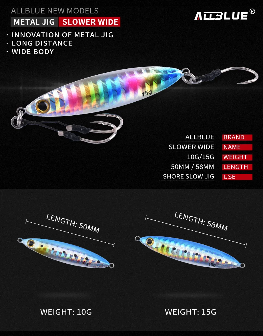 ALLBLUE SLOWER WIDE Metal Slow Jig Cast Spoon 10G 15G Artificial Bait Casting Shore Jigging