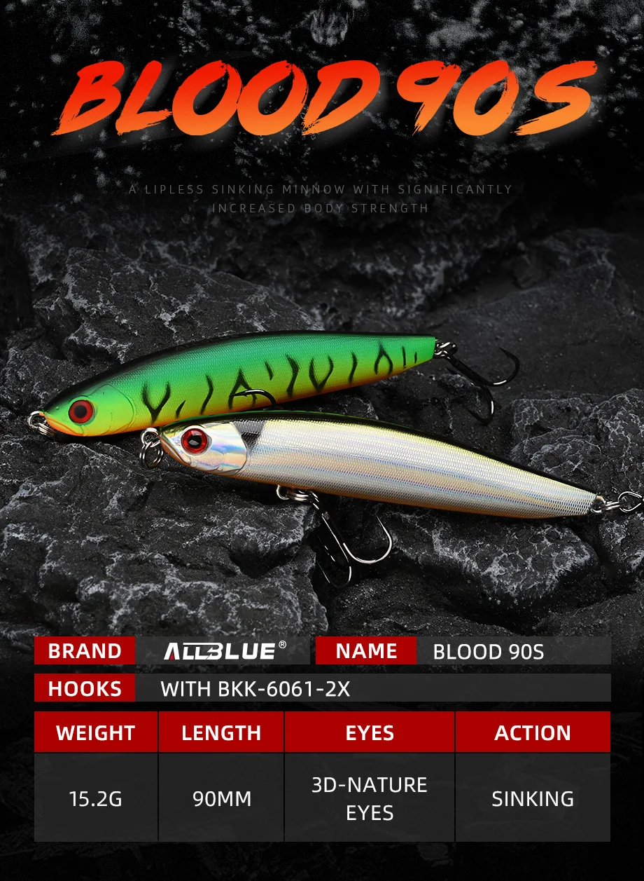 ALLBLUE BLOOD 90S 15g señuelo de pesca que se hunde palo lápiz peso fijo Longcast agua dulce Satlwater cebo Artificial lubina