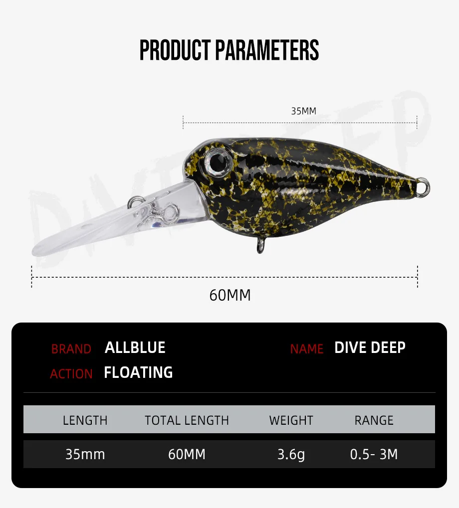 ALLBLUE buceo profundo Crankbait 3,6g 35mm BFS trucha lubina flotante Wobbler señuelo de pesca manivela de agua dulce aparejos de cebo duro Artificial