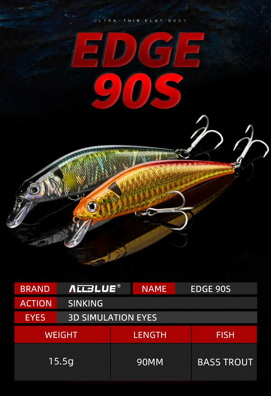 ALLBLUE EDGE 90S pececillo de hundimiento pesado Wobbler plano señuelo de pesca 90mm/15,5g cebo duro Artificial Crankbait trucha equipo de aparejos de lubina