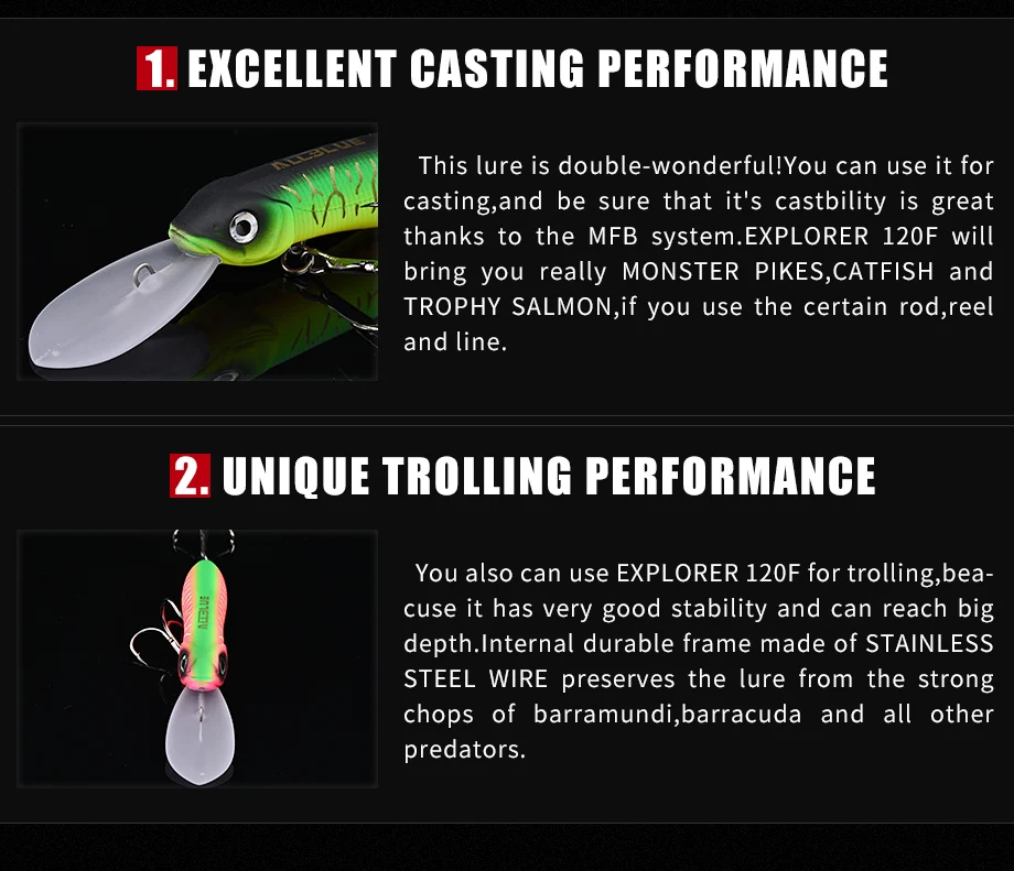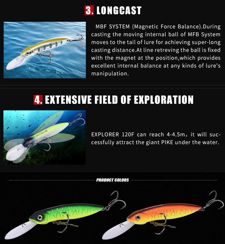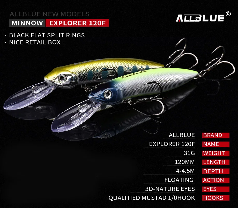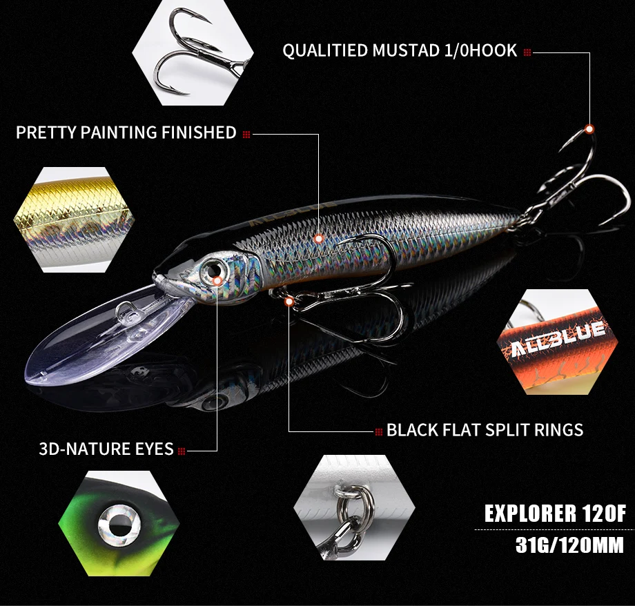 ALLBLUE EXPLORER-señuelo de pesca flotante, cebo Crankbait, Crankbait, Pike Crankbait, profundidad 4-120M, 4,5 MM, 31G, 120F Trolling Wobbler