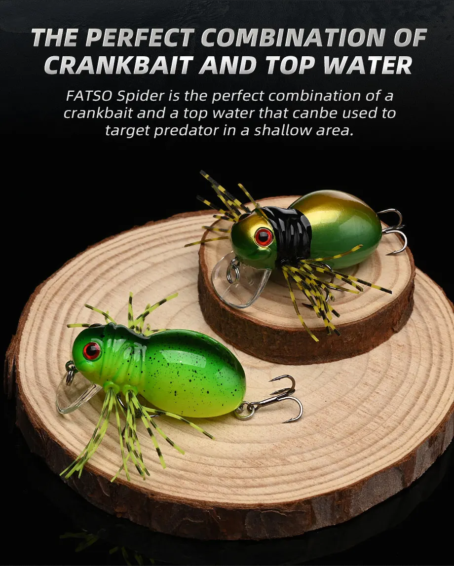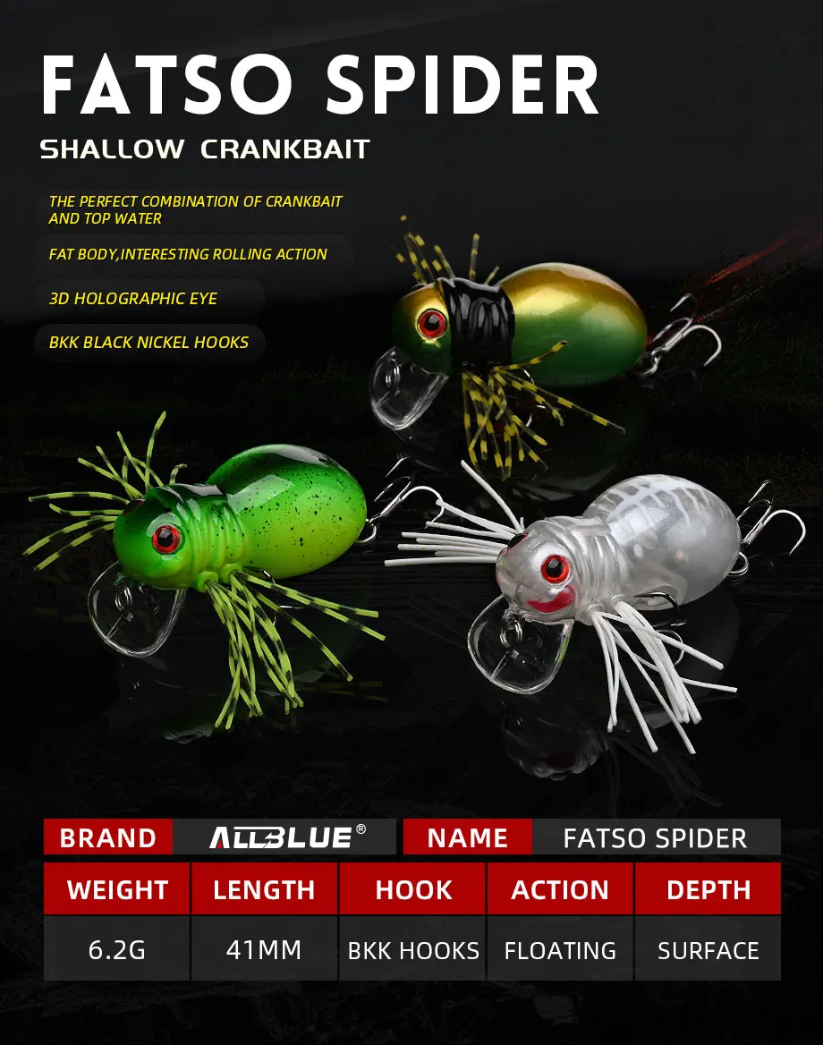ALLBLUE FATSO SPIDER Topwater Crankbait poco profundo 41MM 6,2G señuelo de pesca de insectos rodante cebo Wobbler aparejos de Lucio de agua dulce
