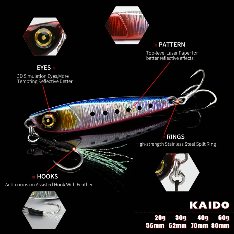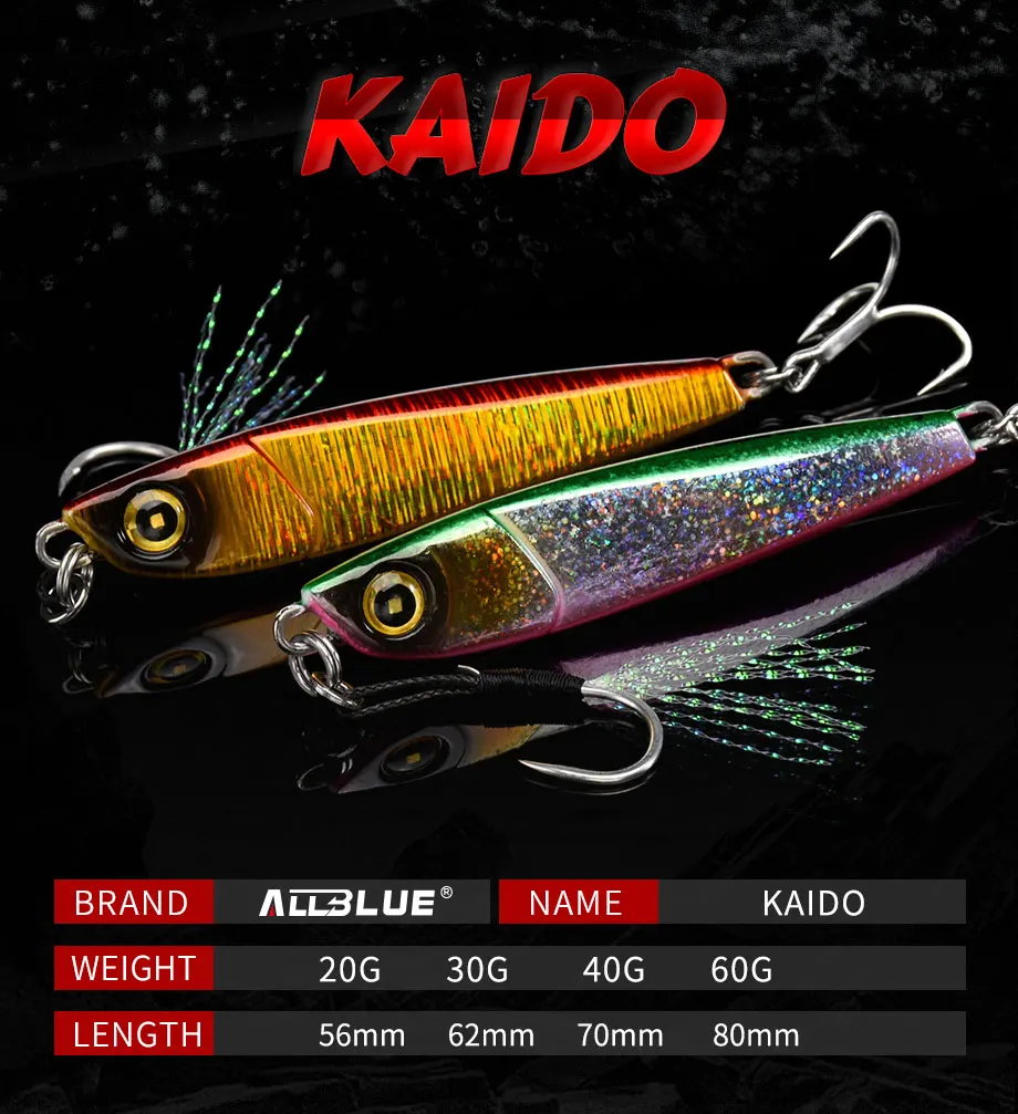 ALLBLUE KAIDO plantilla de Metal fundido 20G 30G 40G 60G cuchara de Jigging fuera de la costa fundición señuelo de lubina cebo Artificial aparejos de pesca