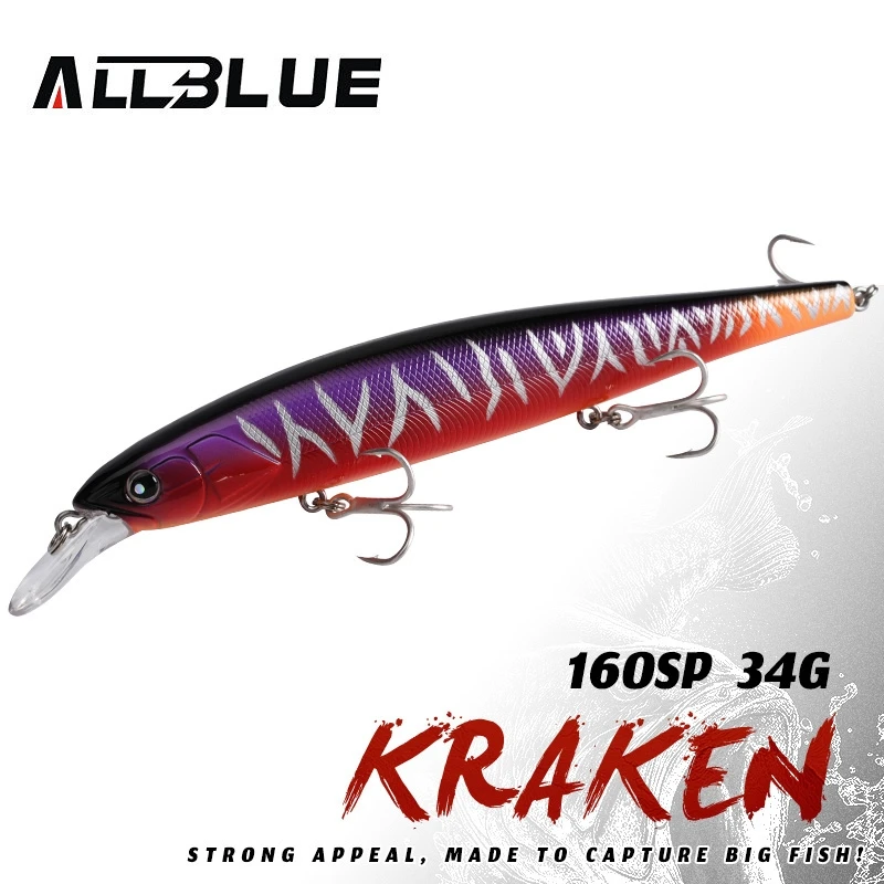 ALLBLUE KRAKEN-señuelo de pesca Wobbler de 16cm y 34g, cebo Artificial de plástico duro, pececillo suspendido, perca de Lucio, aparejos de agua dulce