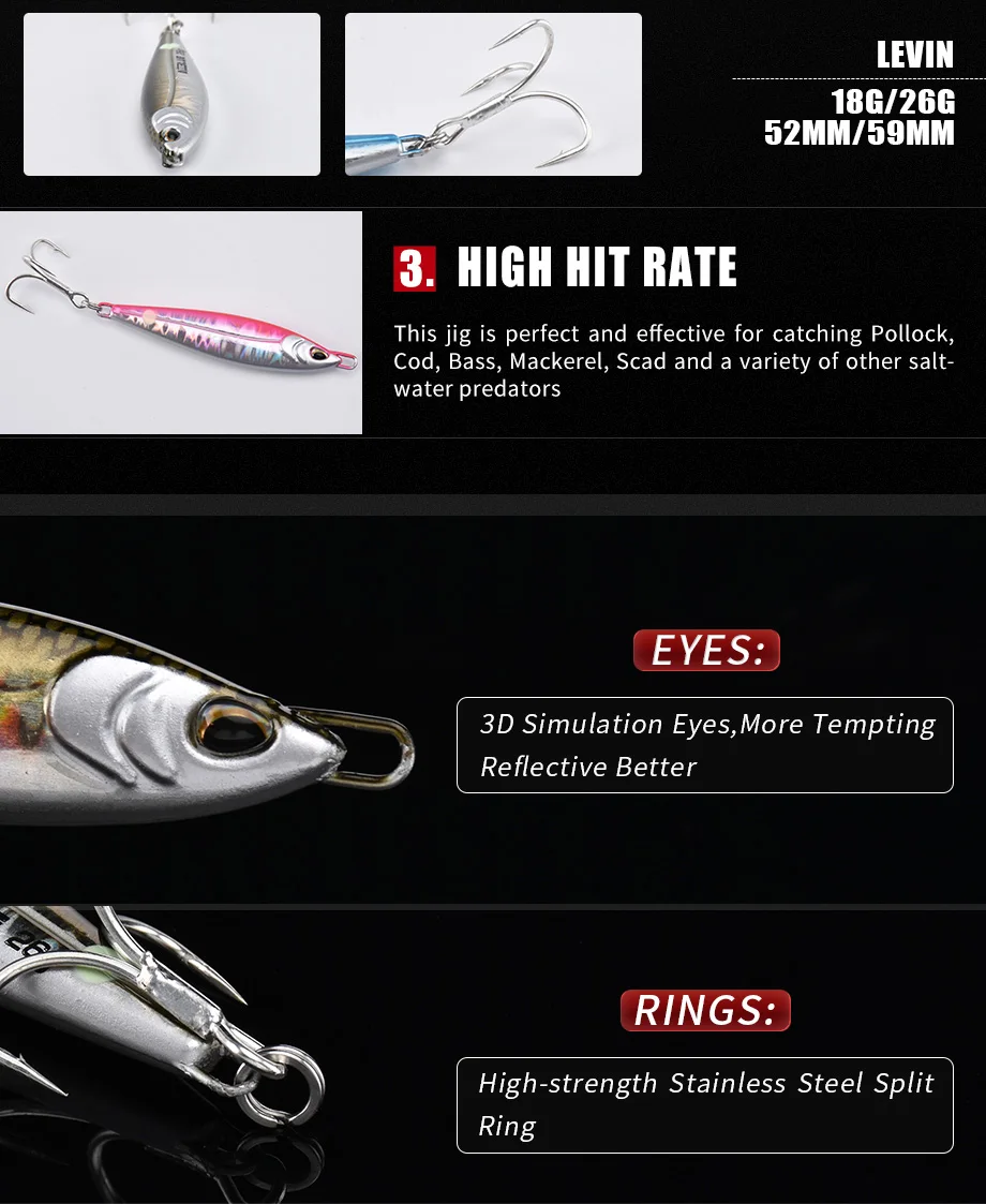 • Cebo artificial :El diseño de cebo artificial de esta cuchara de jigging es perfecto para atraer peces de una manera realista.