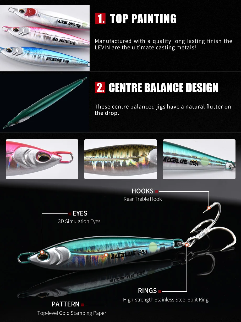 • Tackle de bajo de agua salada :Diseñado específicamente para los trastos bajos de agua salada, Esta cuchara de jigging es un deber-tener para cualquier pescador que apunta a estos peces eselusivos.
