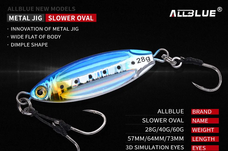 ALLBLUE New SLOWER OVAL cuchara de plantilla lenta de Metal 28G 40G 60G señuelo de pesca