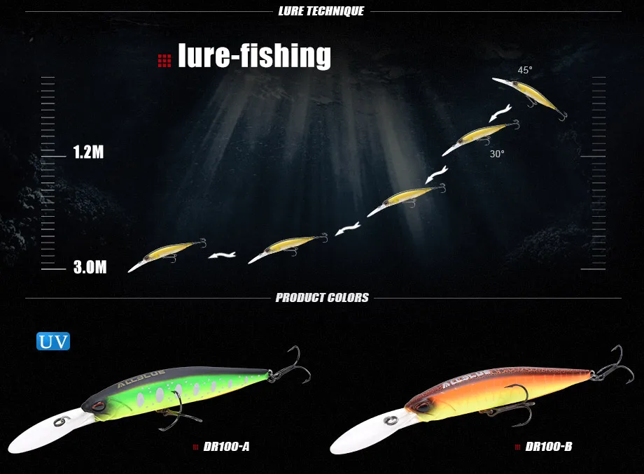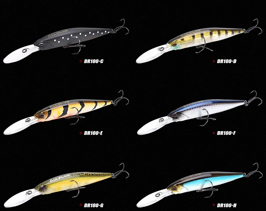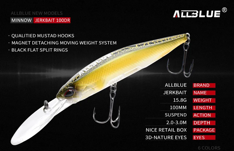 ALLBLUE-nuevo señuelo de pesca profesional piscardo suspendido, Profundidad de piscardo de lubina de 2-3m, anzuelos MUSTAD, 100 dr, 100 mm, 15,8g