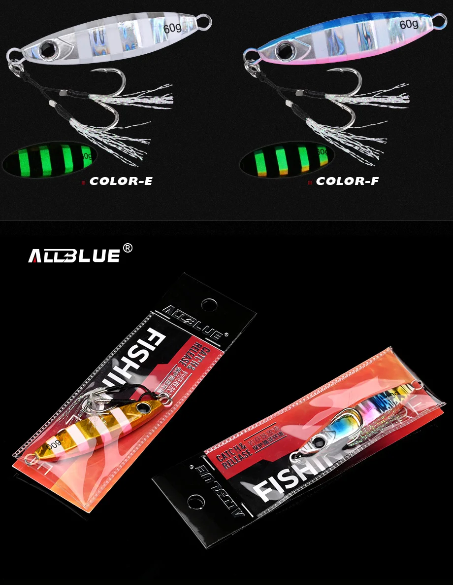 ALLBLUE-Plantilla de Metal para agua salada, cuchara de Jigging de 60g, cebo Artificial para pesca fuera de la costa, señuelo de hundimiento rápido, aparejos de pesca superduros