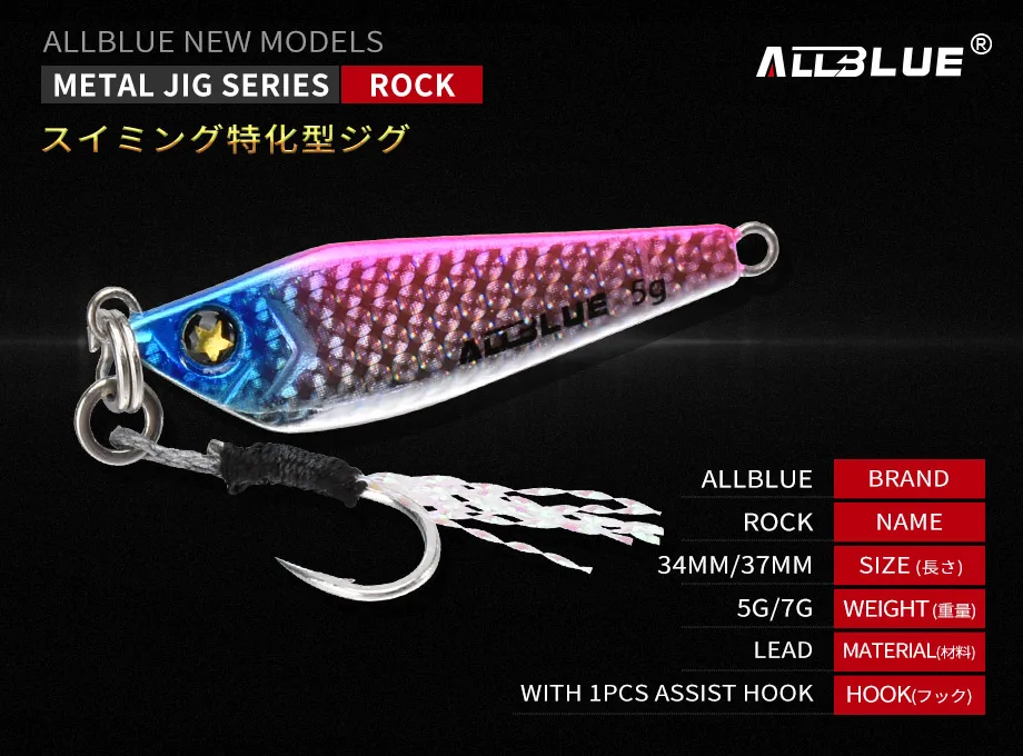 ALLBLUE ROCK 5G 7G Micro plantilla de Metal Shore Casting Jigging cuchara manivela pesca en agua salada señuelo fundido cebo Artificial aparejos