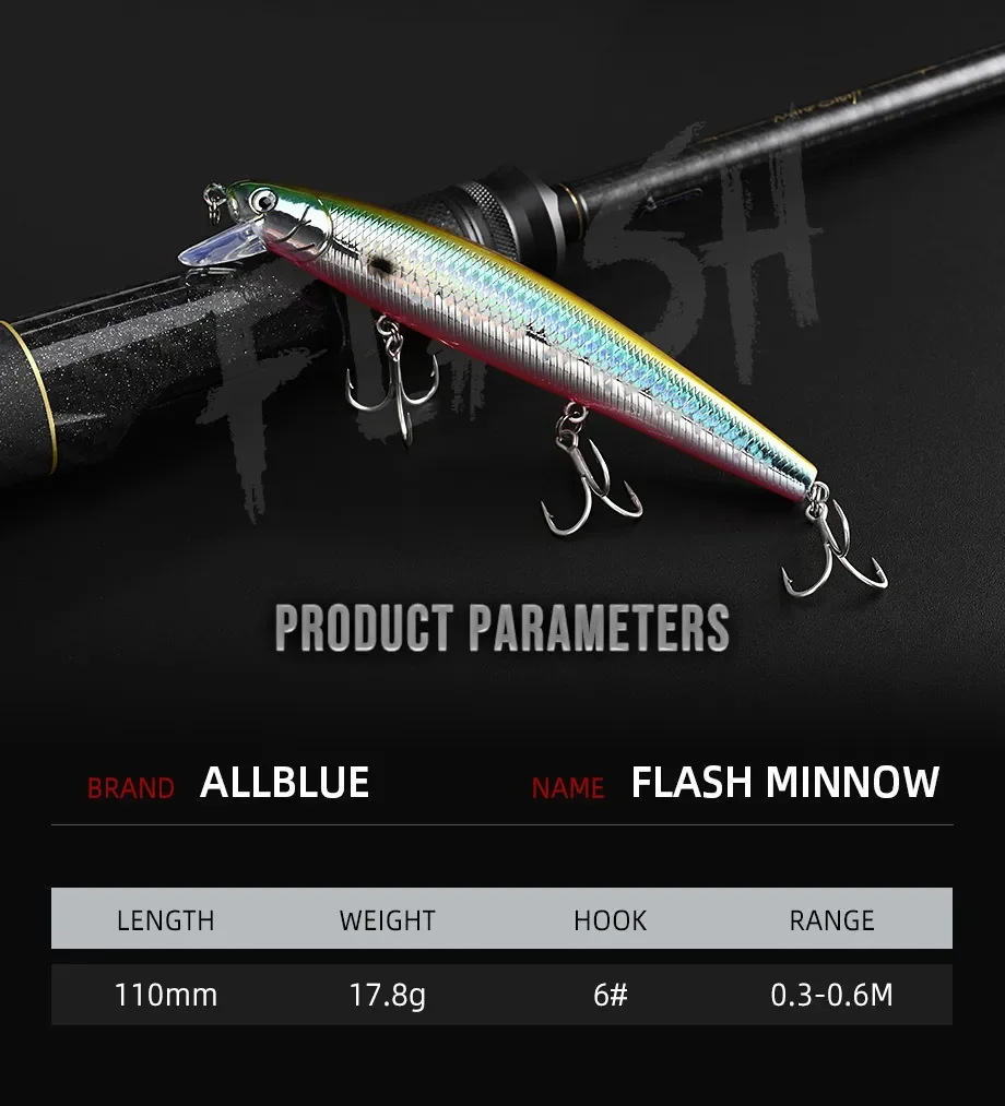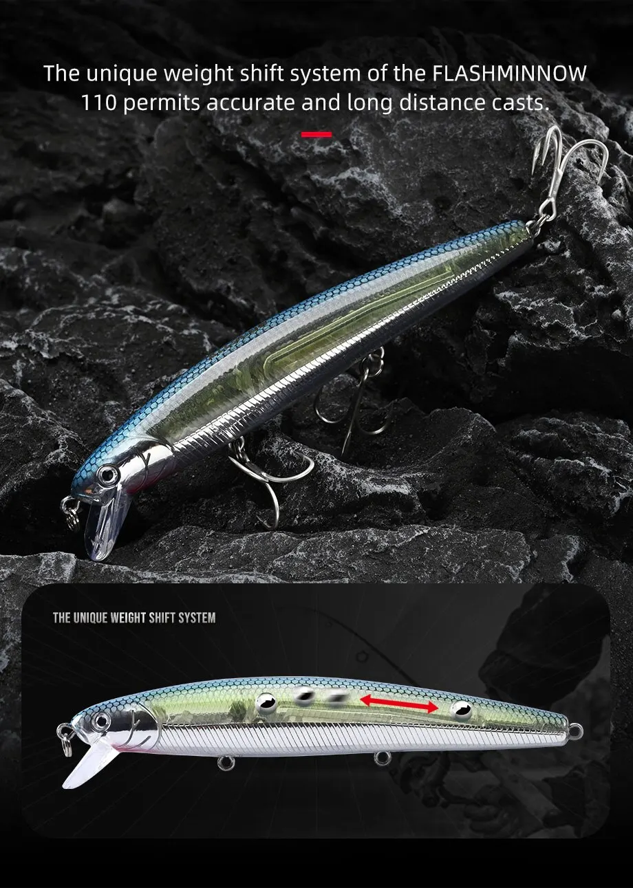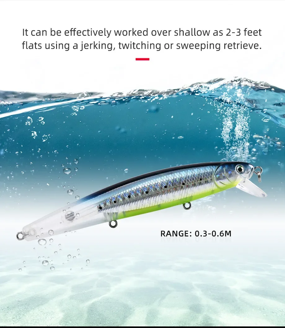 • 110mm 5/8oz :La longitud de 110mm y el peso de 5/8oz hacen que sea fácil lanzar y maniobrar el señuelo en el agua, lo que aumenta las posibilidades de captura de peces.