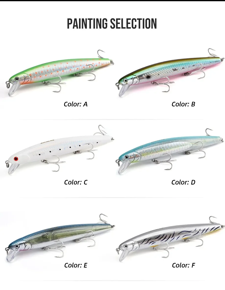 • Cebo artificial plástico suspendido lento :La característica de cebo artificial de plástico de suspensión lenta permite que el señuelo permanezca en el agua por más tiempo, aumentando las posibilidades de atraer peces.