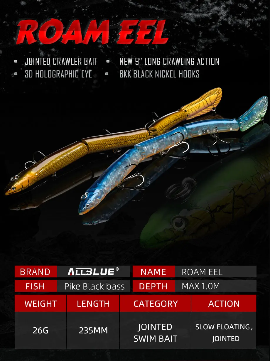 ALLBLUE-señuelo de pesca de anguila articulada, 26g, 235mm, pececillo flotante lento, Wobbler, Jerkbait, cebo duro Artificial, Lucio, perca