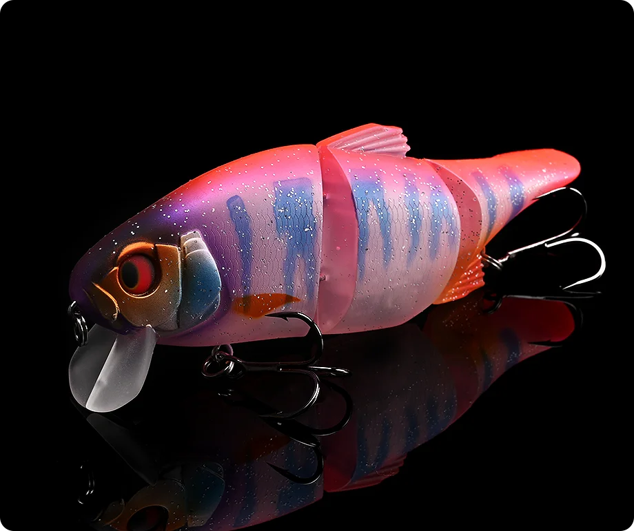 Cola plana para evitar caídas laterales.La forma que se extiende finamente en dirección horizontal suprime la acción del rollo que a menudo se encuentra en los cebos grandes y crea una acción que enfatiza el WOBBRING.