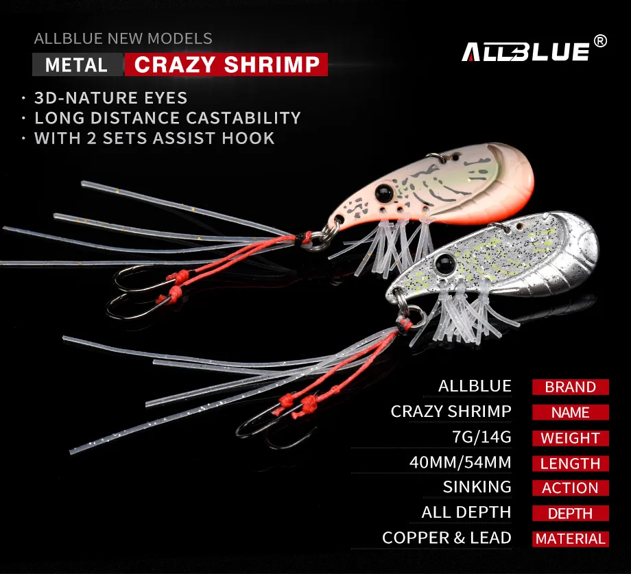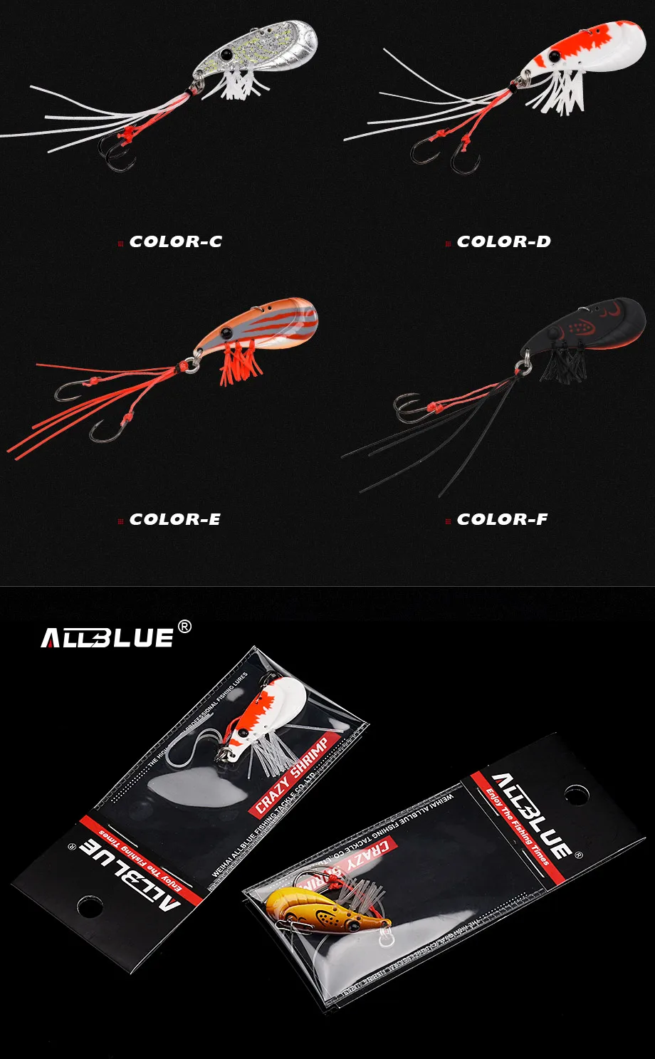 ALLBLUE-señuelo de pesca Crazy Shrimp, cebo Artificial de lubina con anzuelo de asistencia, falda de goma, 7g, 14g