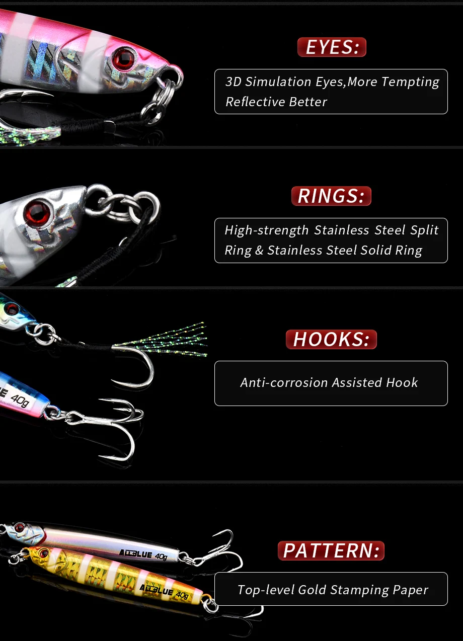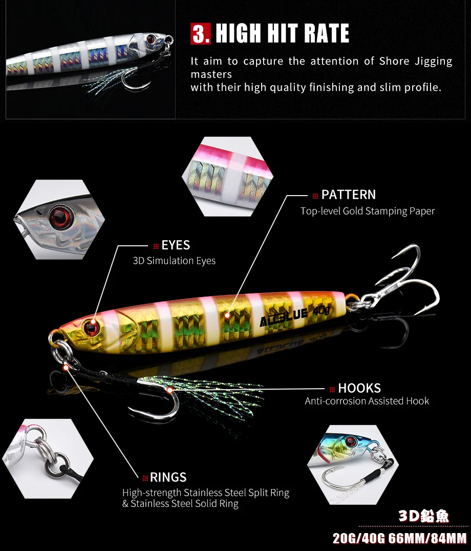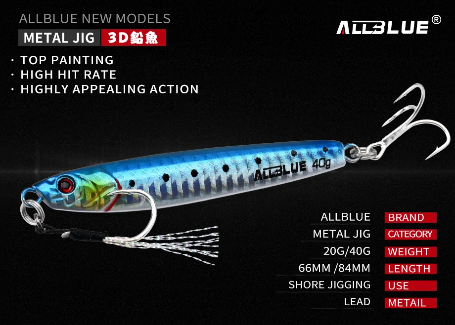 ALLBLUE-señuelo de pesca de lubina Artificial, 3D anzuelo de fundición de Metal, 20G, 40G, arrastre fuera de la costa, Jigging