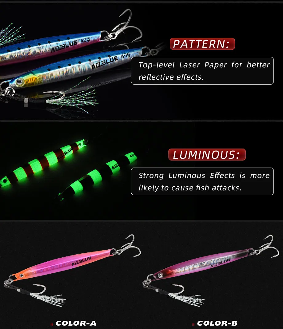 ALLBLUE-señuelo de pesca de lubina Artificial, anzuelo giratorio de Metal fundido a tierra, 20G, 30G, 40G