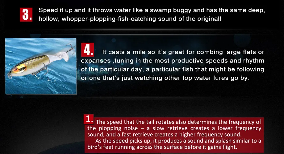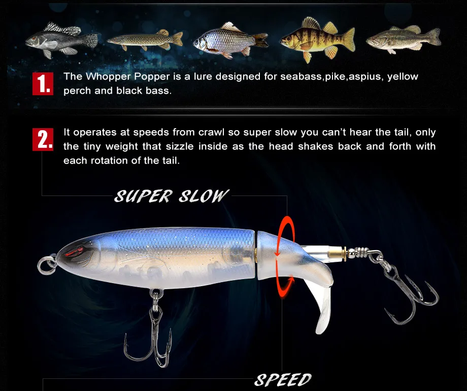 1El Whopper Popper es un señuelo diseñado para lubina, Lucio, aspius, perca amarilla y lubina negra.
