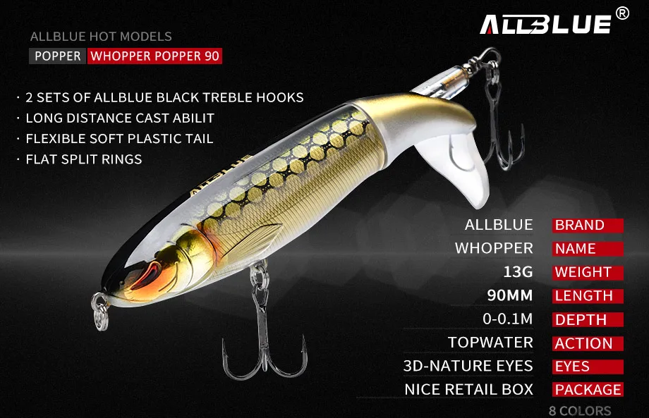 ALLBLUE Whopper Popper 9cm/11cm/13cm Topwater pesca cebo Artificial duro Plopper suave de cola