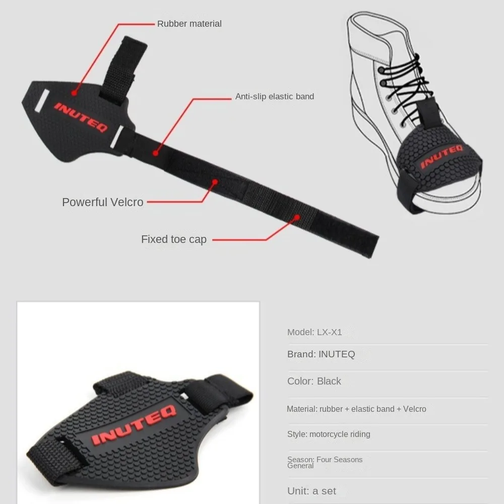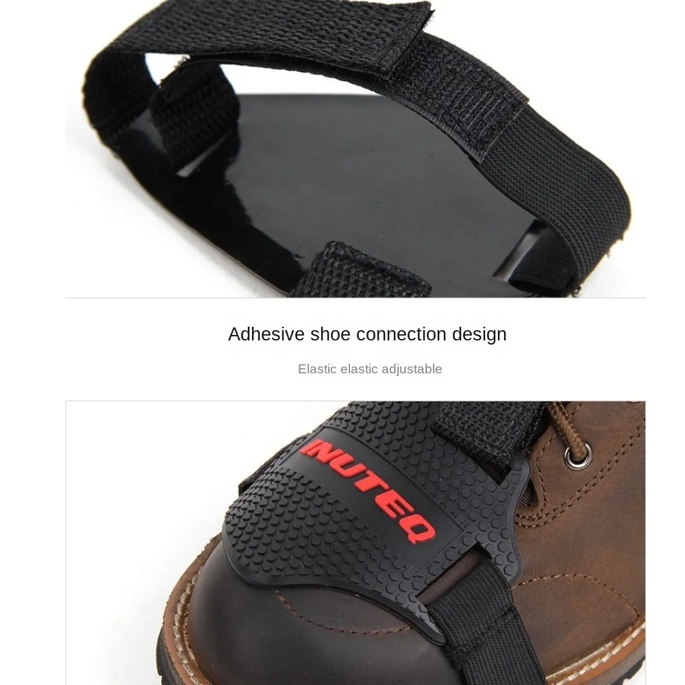 5.Abrasion Resistance: This gear shift pad is an easy to use boot protector, it is abrasion resistant, and soft rubber allows for tight fit to most size boots and shoes.