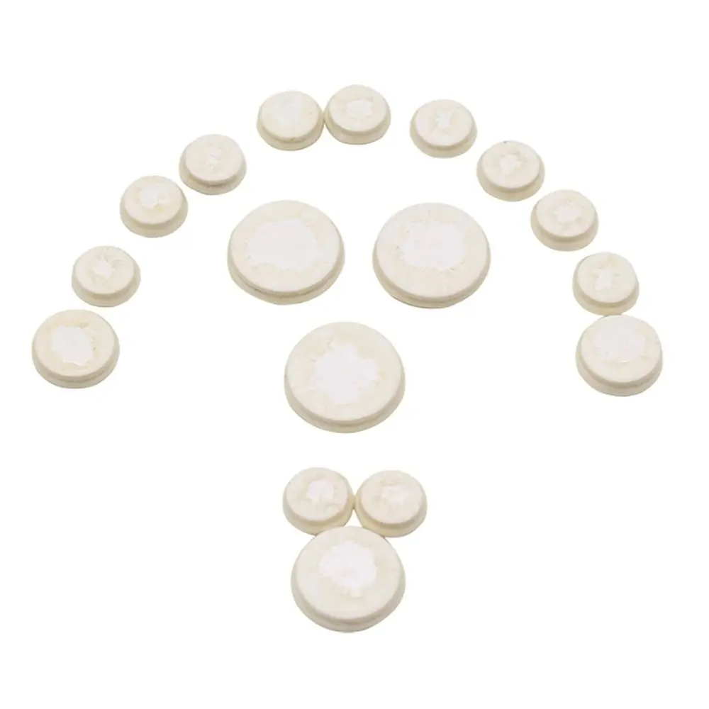 Lista de embalaje: 17 piezas de almohadillas para clarinete producidas de acuerdo con los estándares internacionales, mano de obra exquisita, calidad confiable y sin deformación.