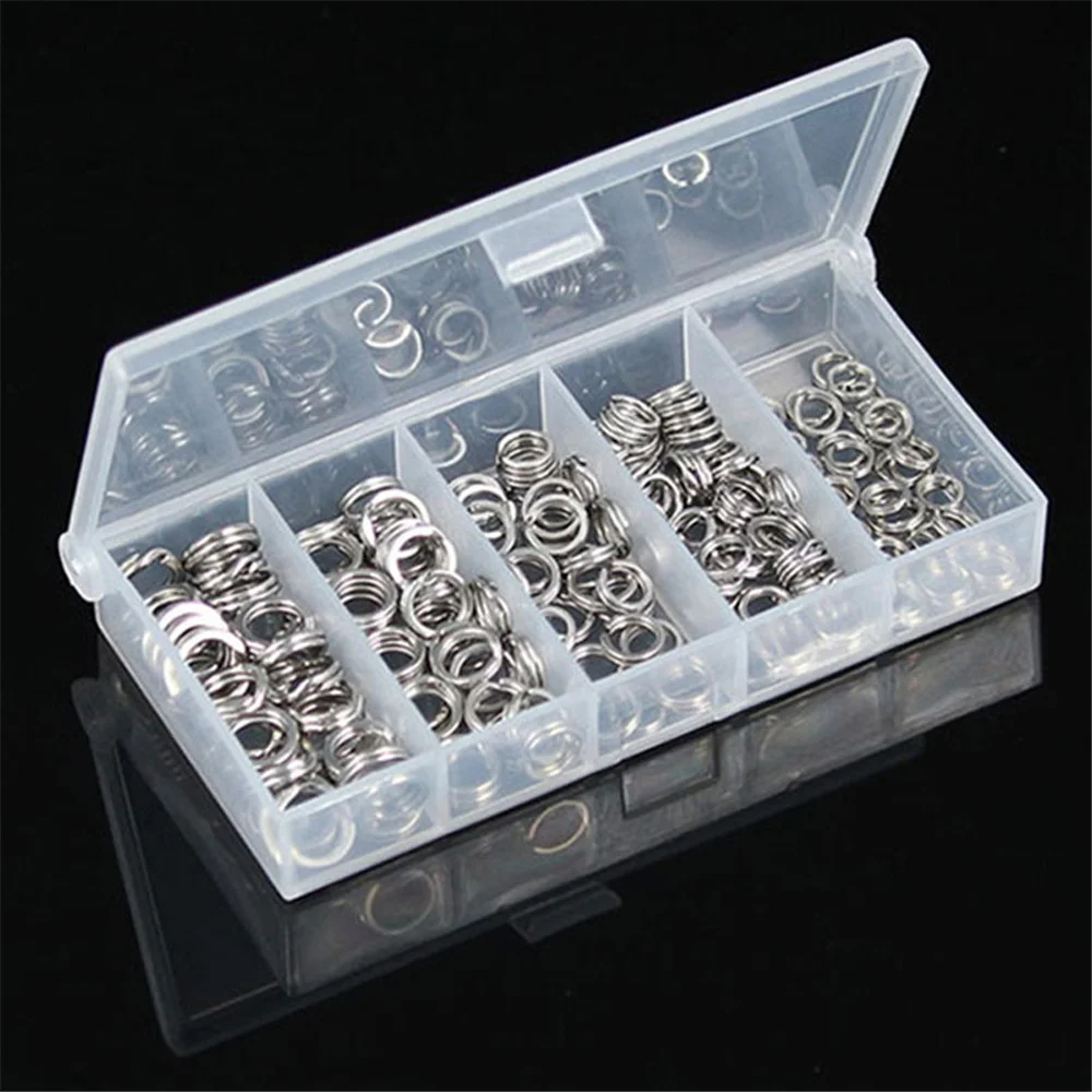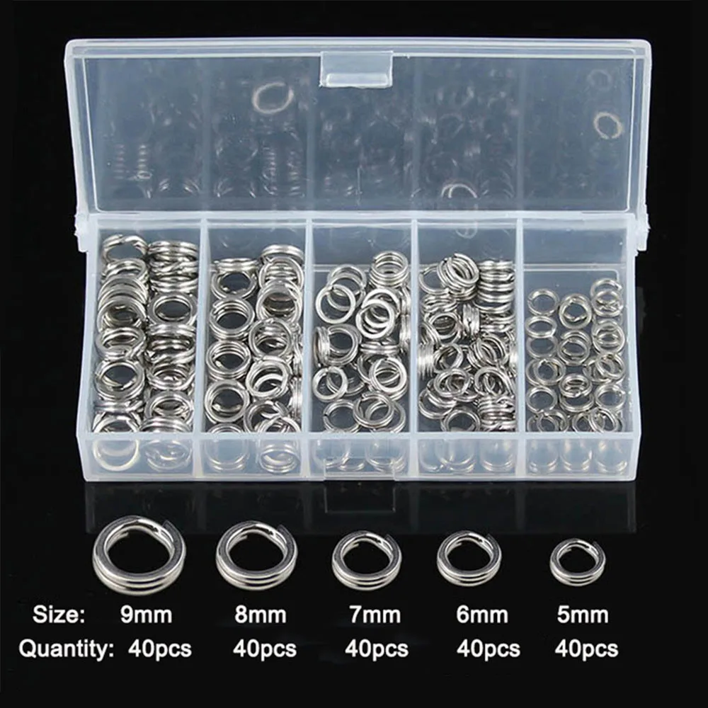 Alta calidad, 200 Uds., río mixto, doble/división/anillo de conexión, aparejos de pesca/accesorios de acero inoxidable surtidos para señuelos en blanco