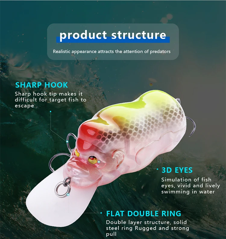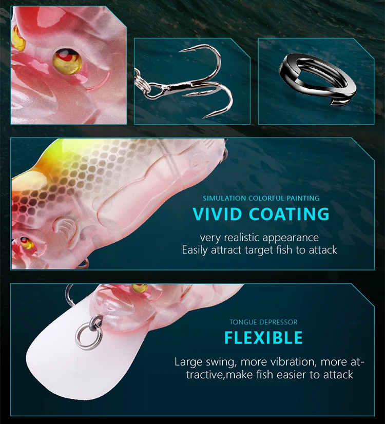 El diseño flotante japonés permite que el señuelo se mueva naturalmente en el agua, atrayendo a los peces con su acción realista.
