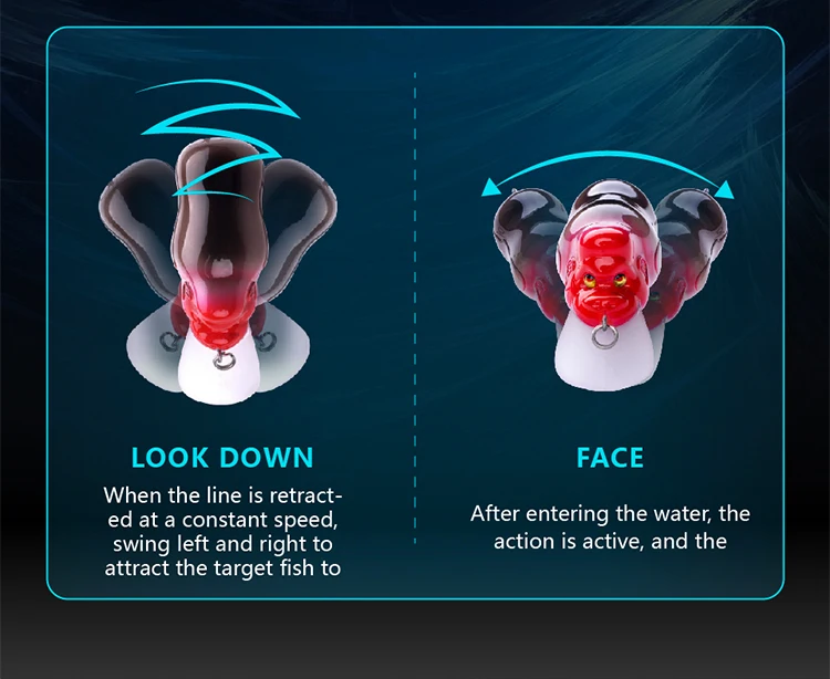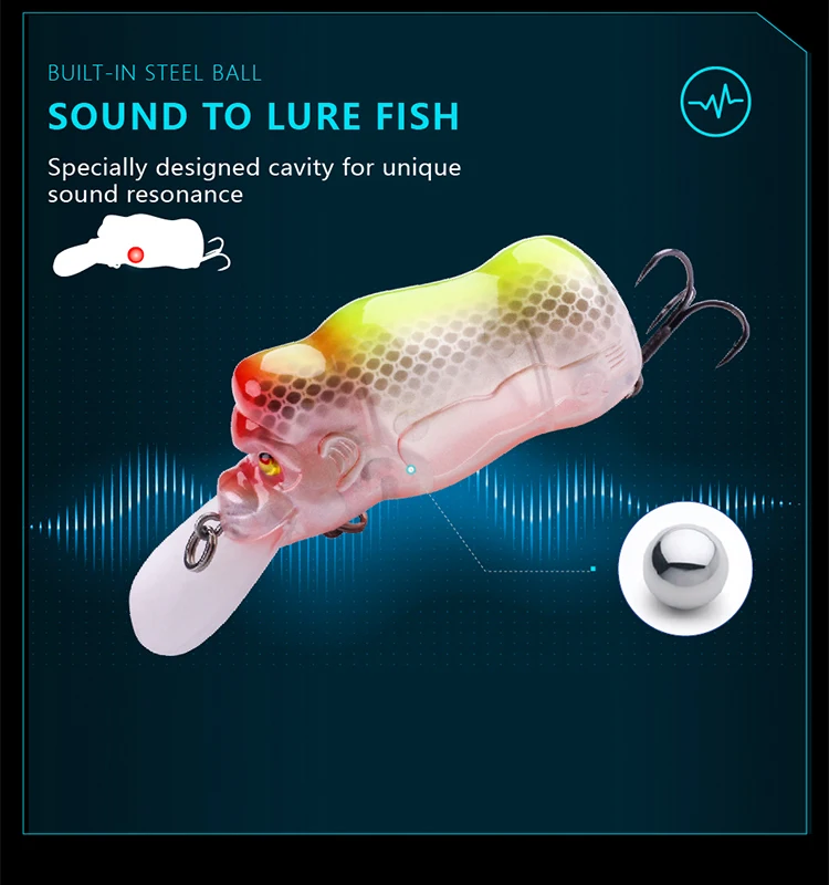 Equipado con un sonajero, este señuelo crea vibraciones y ruidos que imitan a una presa luchando, atrayendo más mordeduras.