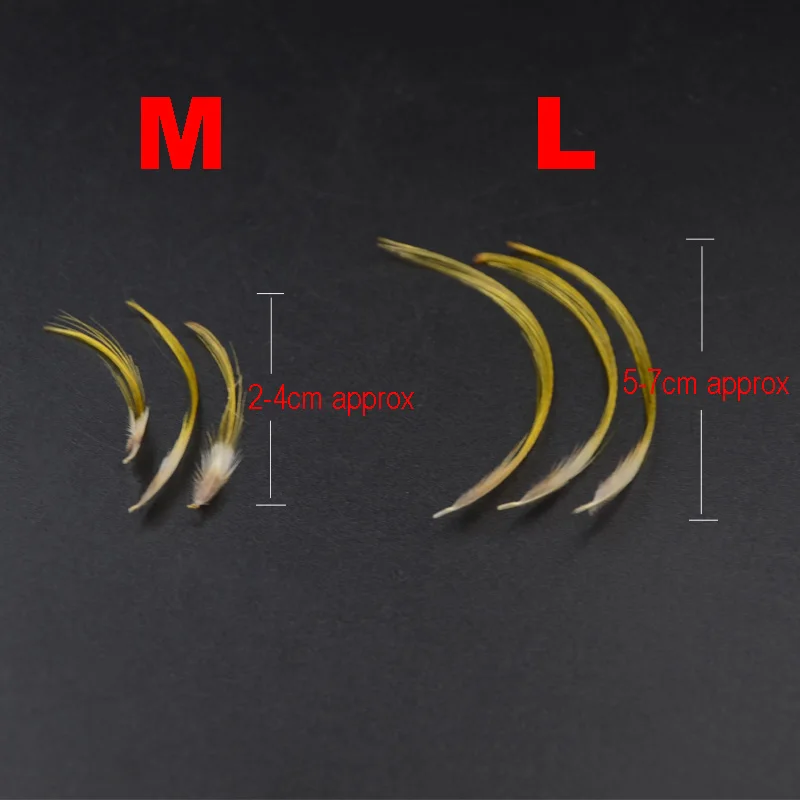Atado de moscas, plumas de cresta de faisán doradas seleccionadas a mano medianas y grandes para atar serpentinas y moscas húmedas, plumas amarillas brillantes