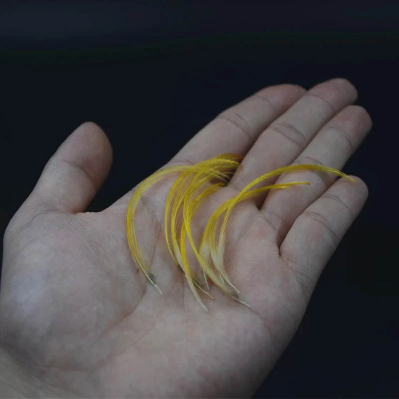 Características:Plumas de cresta de faisán dorado para serpentinas salmón moscas húmedas tradicionales.