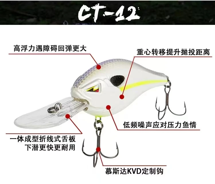 American ARK Nuevo CT12 Señuelo medio y profundo Rock Fat Crank Bait de búsqueda dura Cebo con ruido
