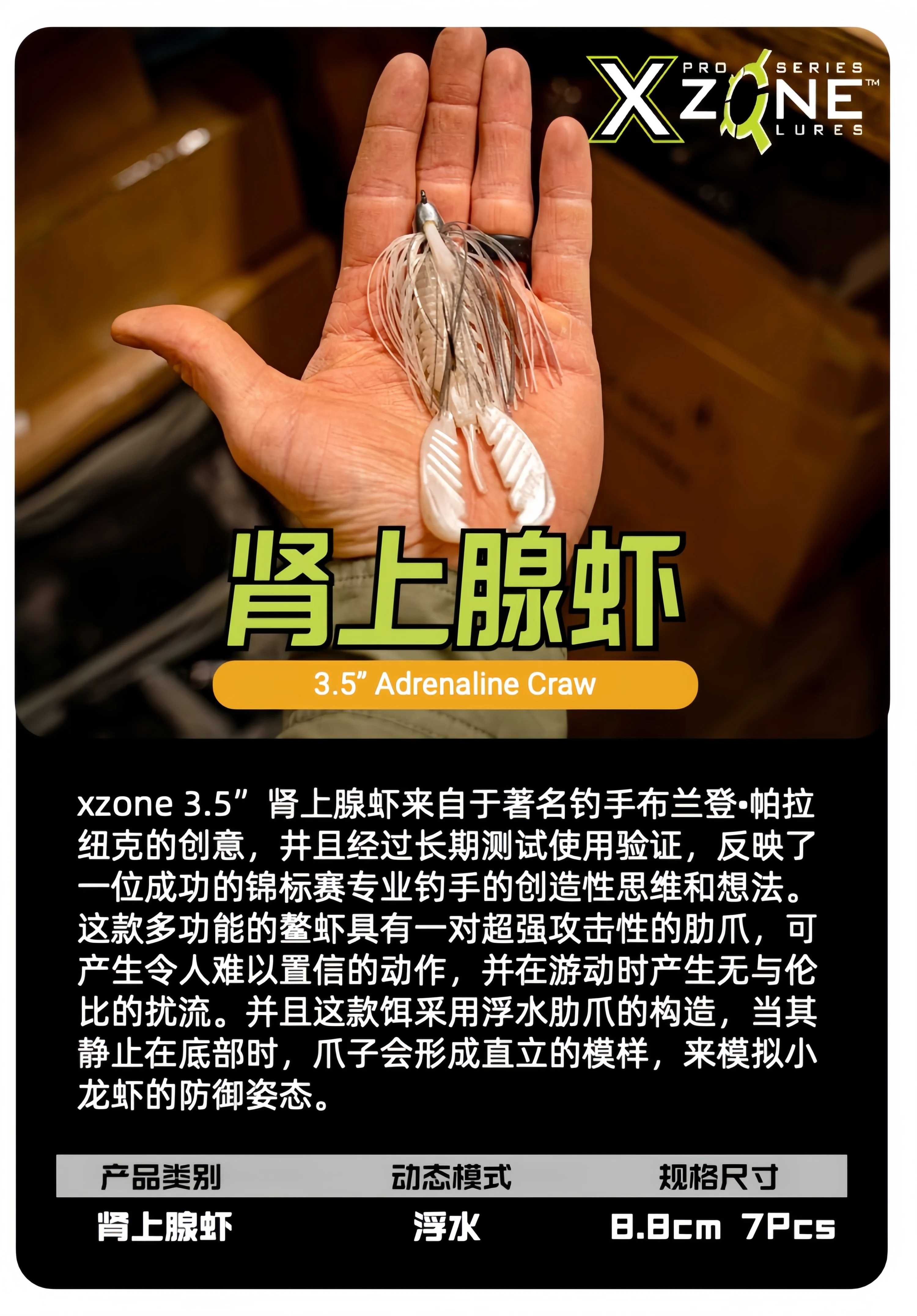 American XZone Adrenaline Craw Jr3.5 pulgadas Adrenal camarones flotantes señuelo cebo suave perca