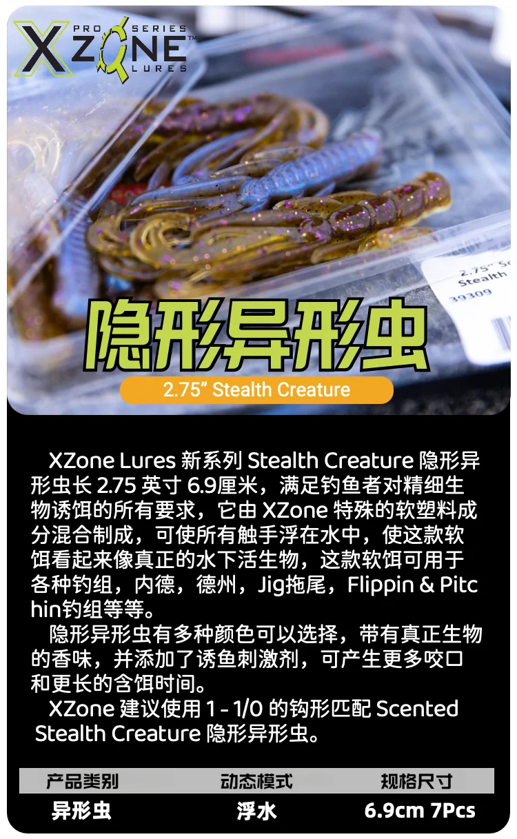 American XZone Stealth Creature - Cebo flotante invisible para insectos alienígenos de 2,75 pulgadas, color negro, Pit Luya