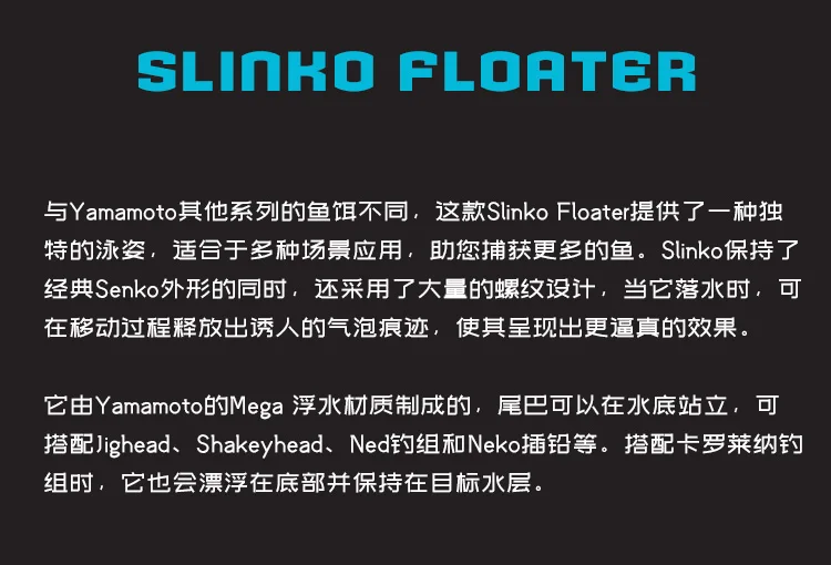American YAMAMOTO SLINKO FLOATER SENKO Noodle Worm Wacky Floating NEKO Bait