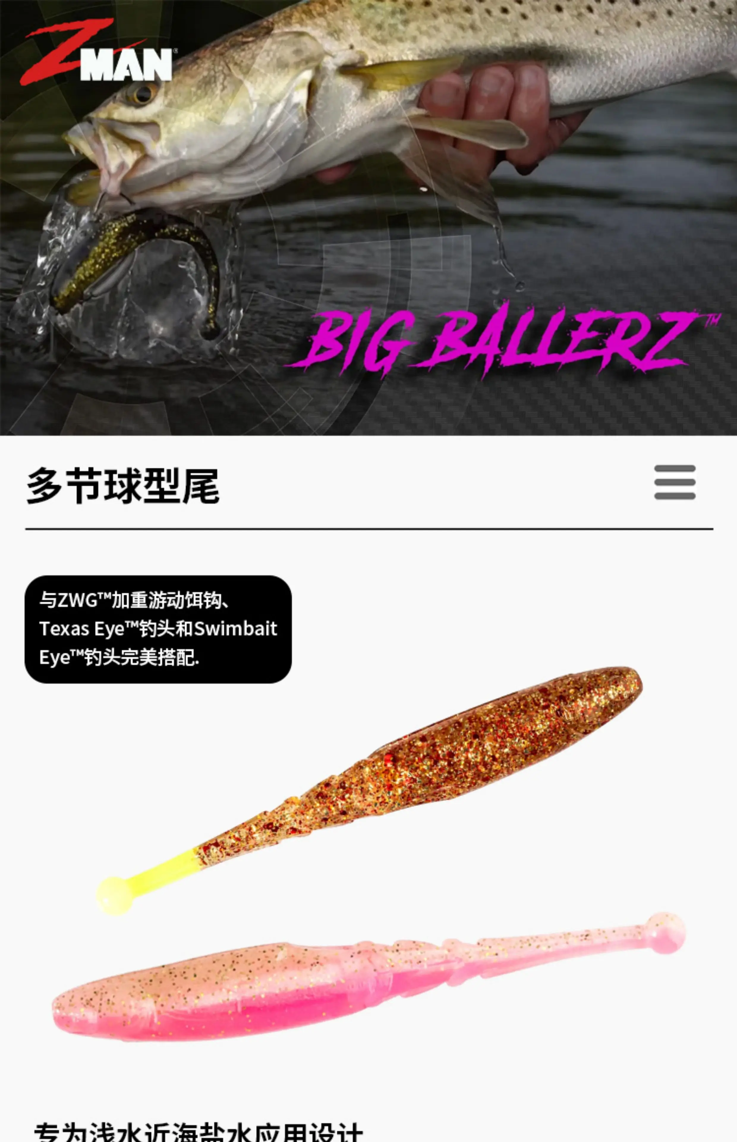 American Zman-señuelo de cola de bola multisección, cebo falso de BALLERZ grande, perca de 4 pulgadas, cebo de pez mandarín, cebo de gusano suave de pozo negro