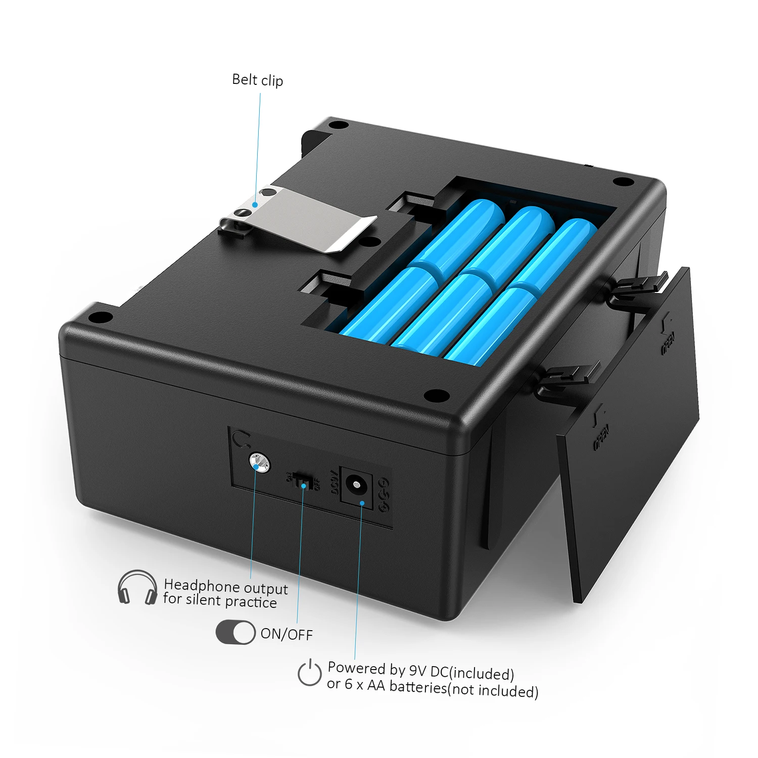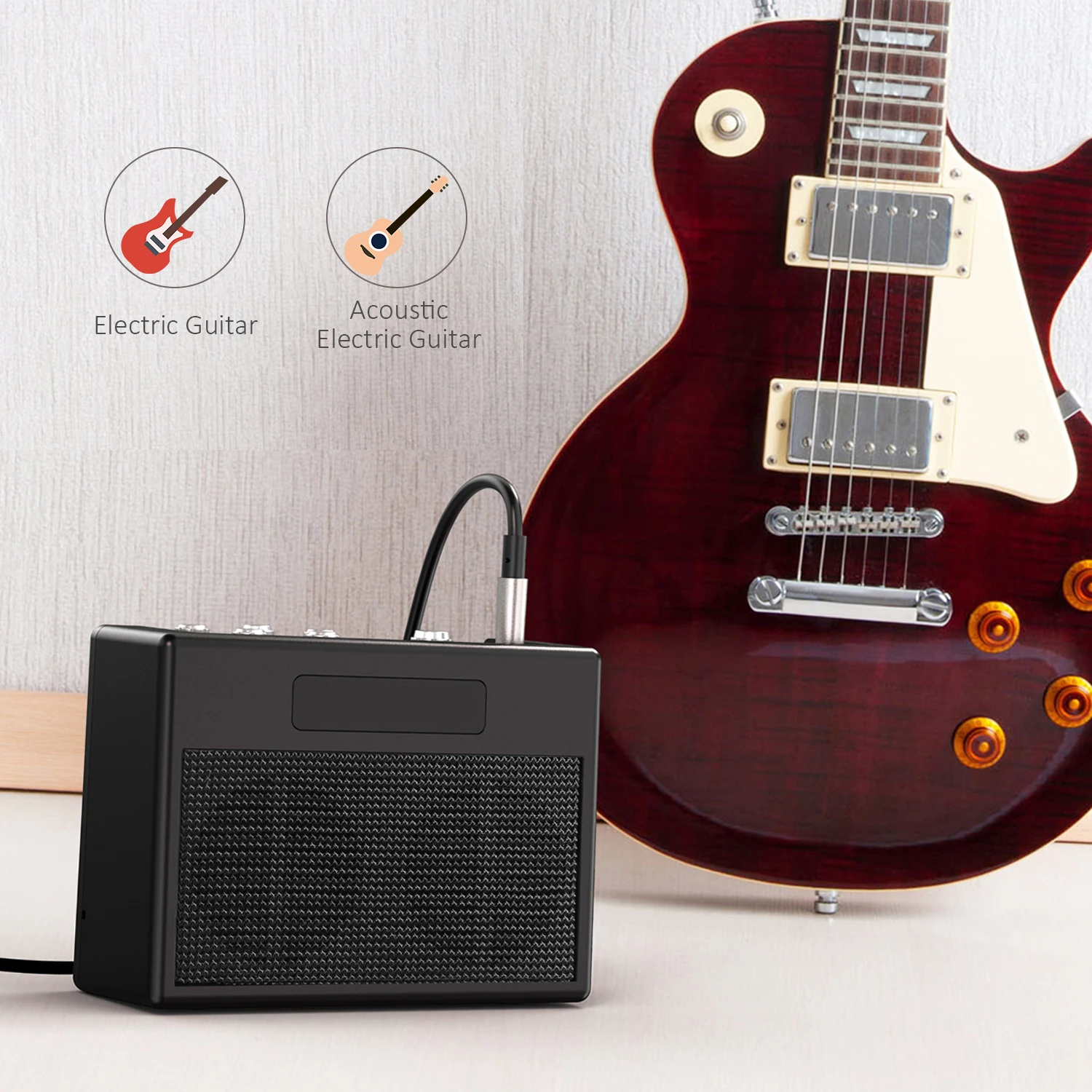 Amplificador de guitarra muy portátil y ligero especialmente diseñado para guitarristas. Con él, puedes tocar tu guitarra en cualquier lugar y compartir la maravillosa música con otros libremente. Y el clip metálico para el cinturón en la parte posterior incluso le permite reproducir su música mientras viaja.